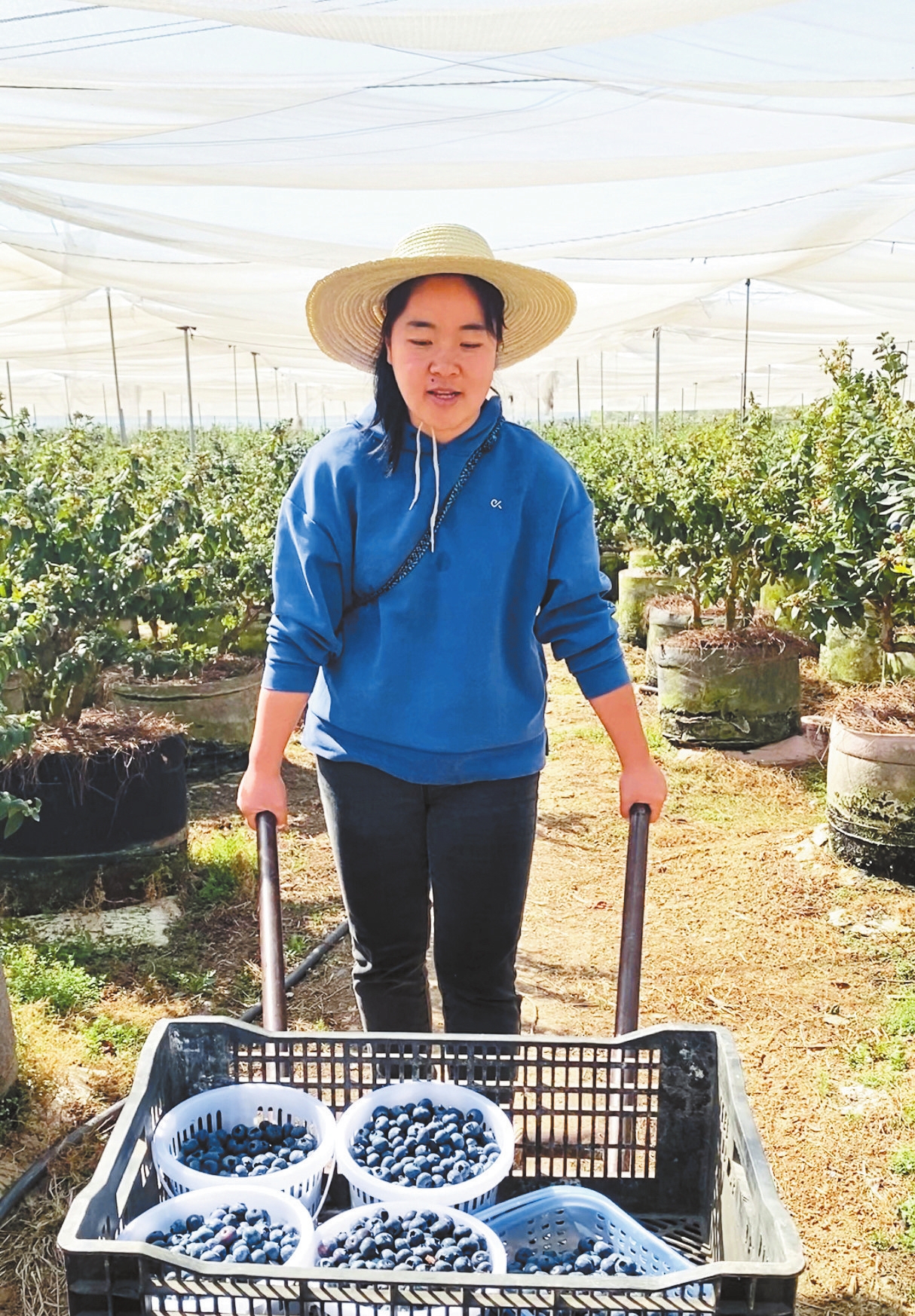 近日,在蒙自市新安所街道,一位头戴草帽、手扶推车的“90后”女孩正帮助当地果农直播带货,短短一个小时就卖出了一车蓝莓。她叫梁亚敏,出生于新安所街道,是一名返乡创业大学生。
