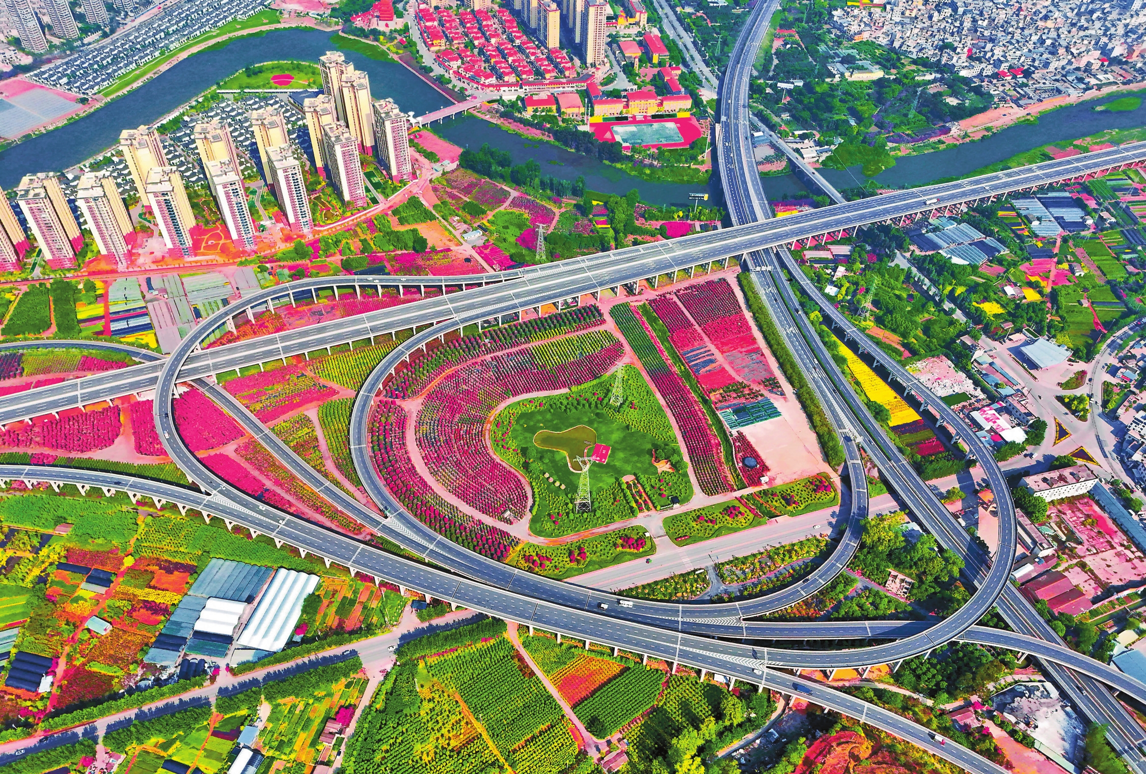 盛夏时节,宜良县种植的三角梅绚丽绽放,昆明绕城高速公路东南段宜良枢纽立交区内,数万株怒放的三角梅将高速公路立交桥装点得如同一幅美画,美不胜收。