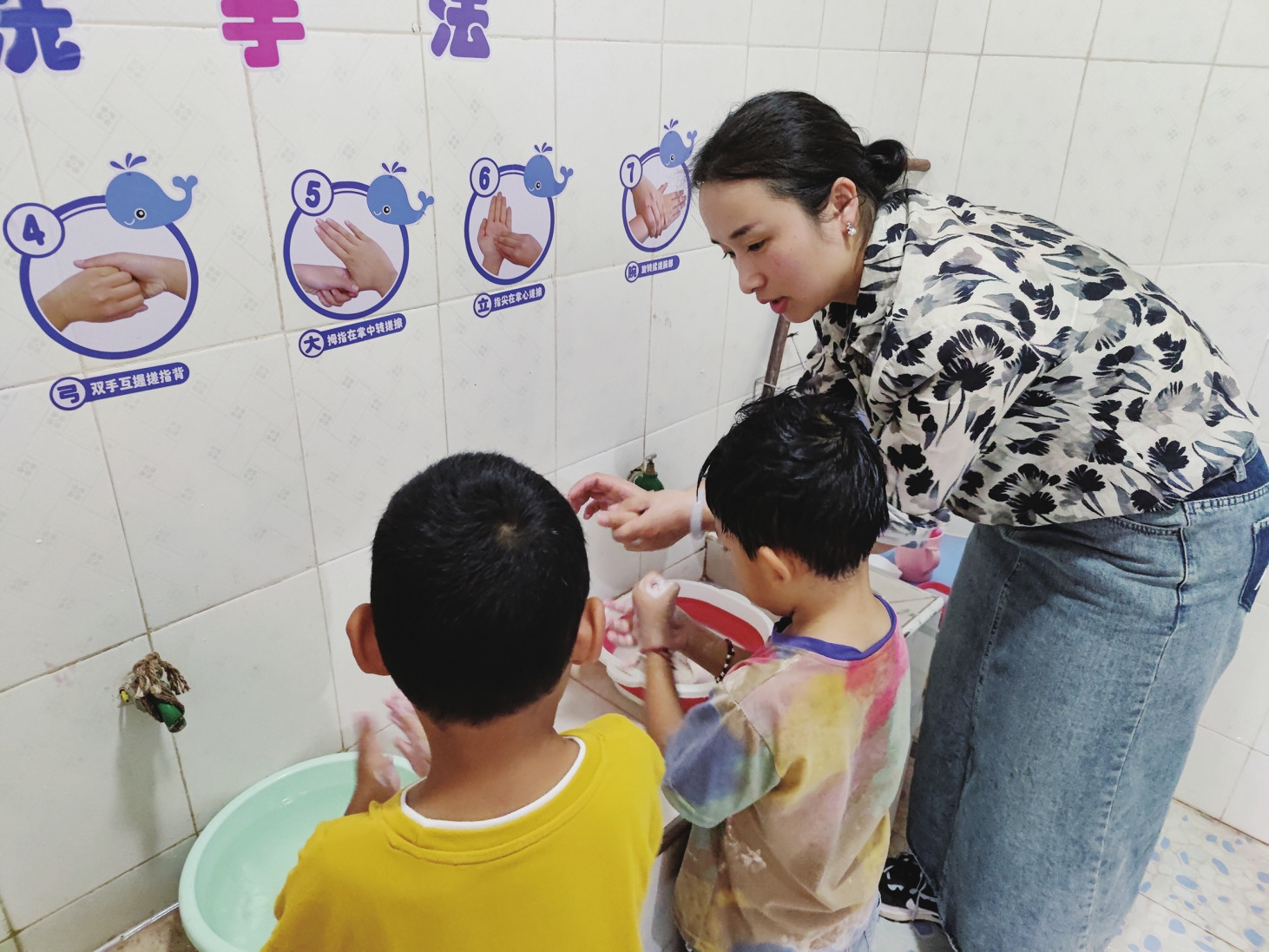 在大麦地中心幼儿园,“爱心妈妈”正与小朋友们开心地游戏、唱歌。到了晚上,“爱心妈妈”为小朋友洗漱并帮助他们入睡。大麦地中心幼儿园是一所有着44名幼儿的全托幼儿园,每周三放学后,家长会把孩子接回家。但有一部分留守儿童或家离学校较远的幼儿回家不便,为此,大麦地镇成立了“爱心妈妈”团队,通过暖心行动给予这部分幼儿物质和精神上的爱心帮扶。