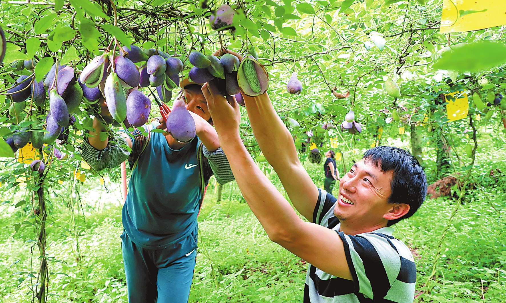 “自基地建成以来,我们一直致力于管护、改良,让八月瓜果实更香、更糯、籽更少,方便后期大面积推广种植。”基地负责人谢宏龙介绍,随着品种的不断更新和技术的日趋成熟,八月瓜将发展成为当地群众增收致富的又一朝阳产业。