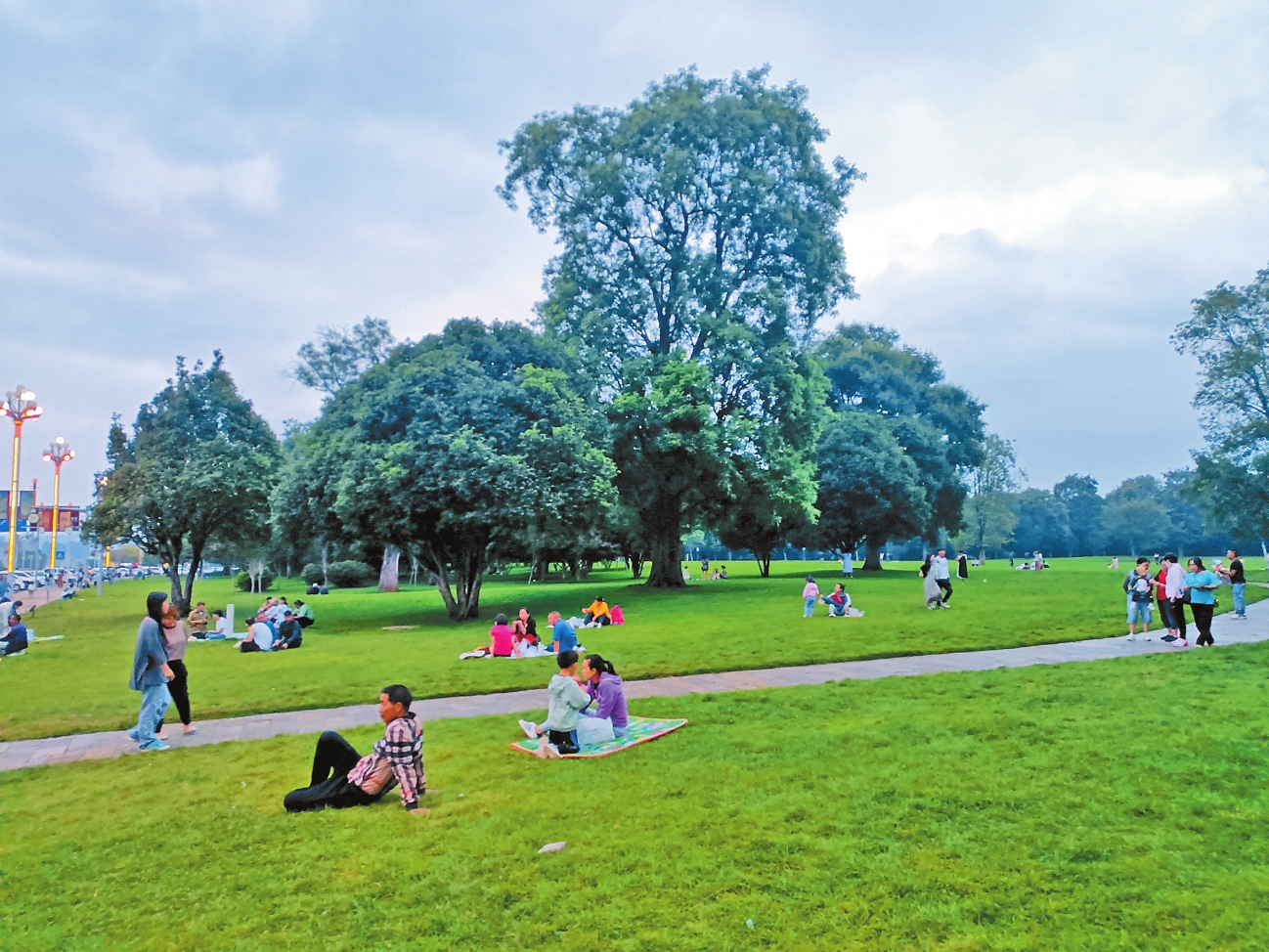 近年来,昆明市积极探索在城市公园的草坪、林下空间、空闲地等区域划定开放共享区域,先后推出两批开放共享绿地,并不断完善配套设施,提高服务和治理水平,更好地满足市民游客亲近自然、休闲游憩、运动健身等新需求和新期待,让席草而坐成为一种惬意,让绿色可达可赏可享。