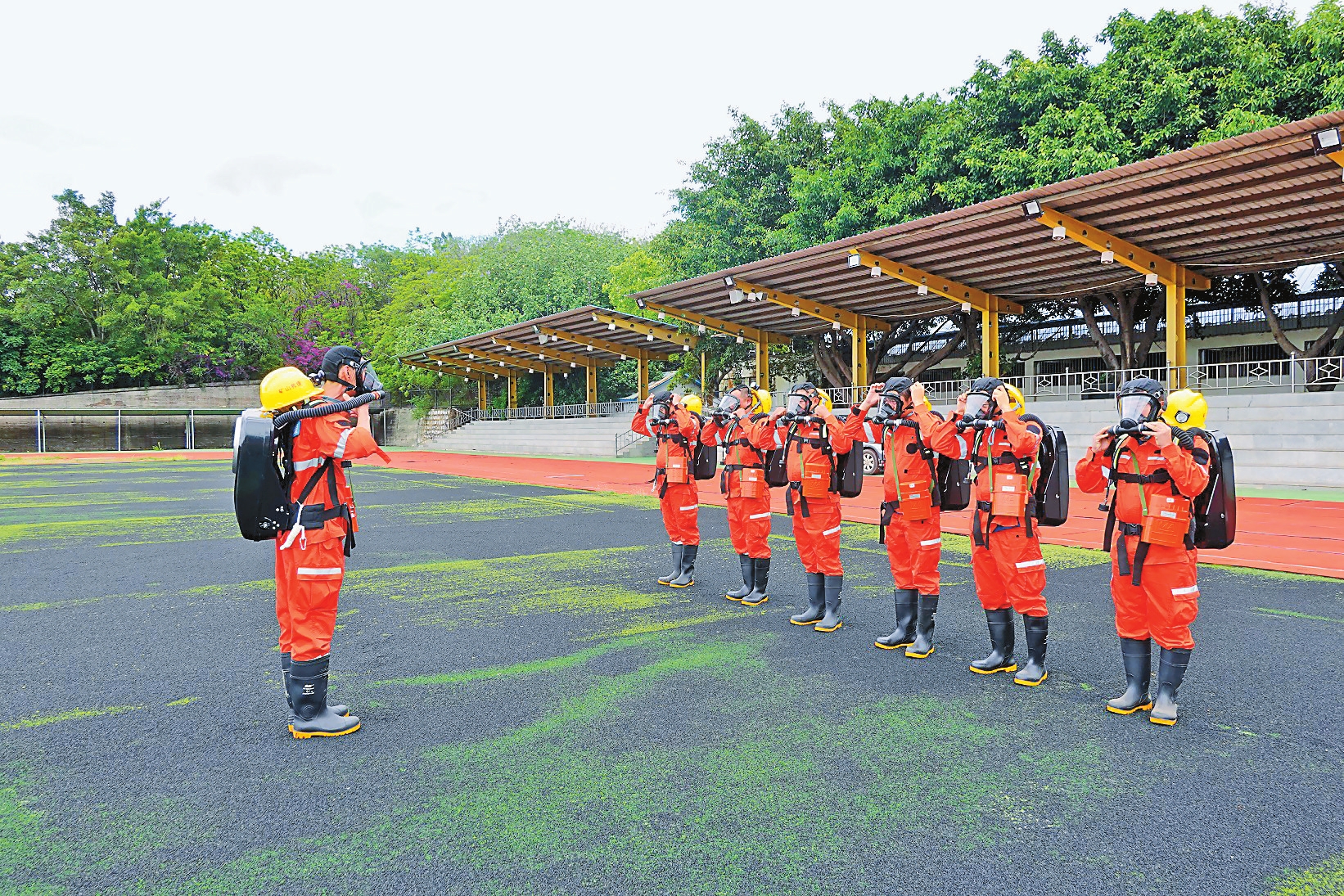 在小龙潭露天矿足球场,由两个露天矿组成的44人矿山兼职救护队正在进行户外专项训练,训练以队列训练、体能测试和场景模拟训练为主。通过训练有效提升队员身体素质,检验应急救援队伍实战能力,为后期应急救援能力建设提供宝贵经验。