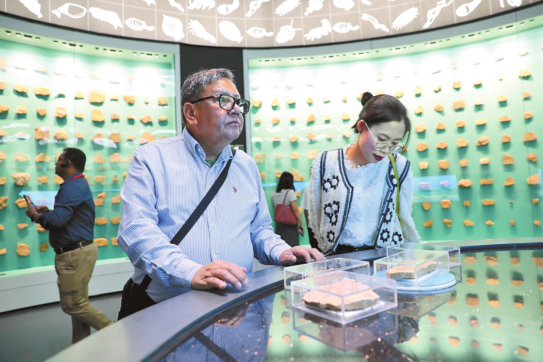 “从演化的角度来看,人类的祖先可以追溯到小小的昆明鱼。”在澄江化石地自然博物馆,伴随着讲解,嘉宾们通过LED球形屏科普视频、智能体感互动游戏等现代科技手段,直观了解5亿多年来生命演变的精彩历程。孟加拉国独立电视台副总编辑沙明·阿布杜拉·扎赫迪赞叹技术赋能文旅科教的同时,也希望在自然地理纪录片方面与云南媒体展开合作,共同探索和记录双方的自然风光与生态多样性。