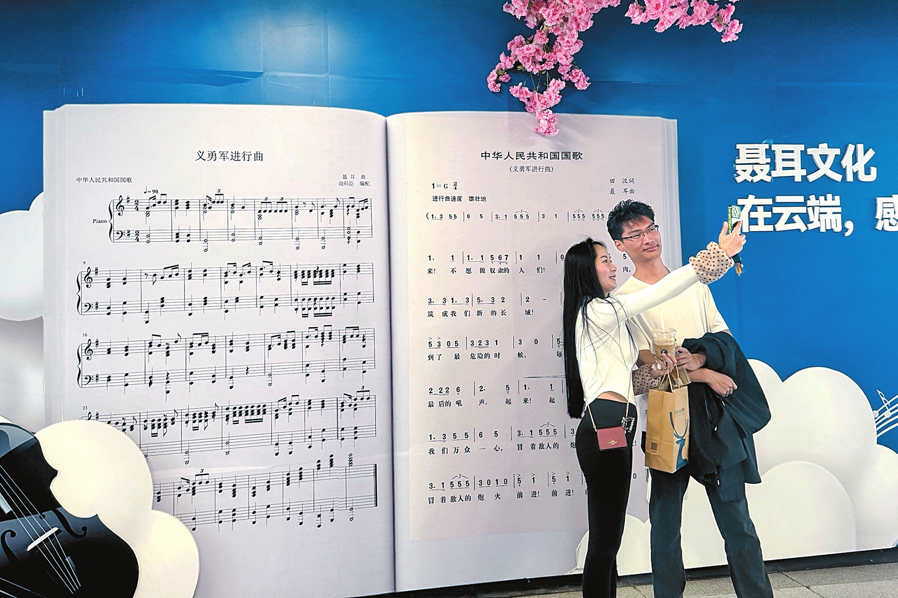 以黄、橘色为主色调的讲武堂景色图,白蓝色为主的翠湖周边景点墙,《义勇军进行曲》巨幅乐谱,贯穿通道的粉色仿真樱花……今年初,依托地铁沿线丰富的旅游资源,昆明轨道交通5号线建设运营有限公司对华山西路站内的布景进行了提升,推动实现“站城融合”。