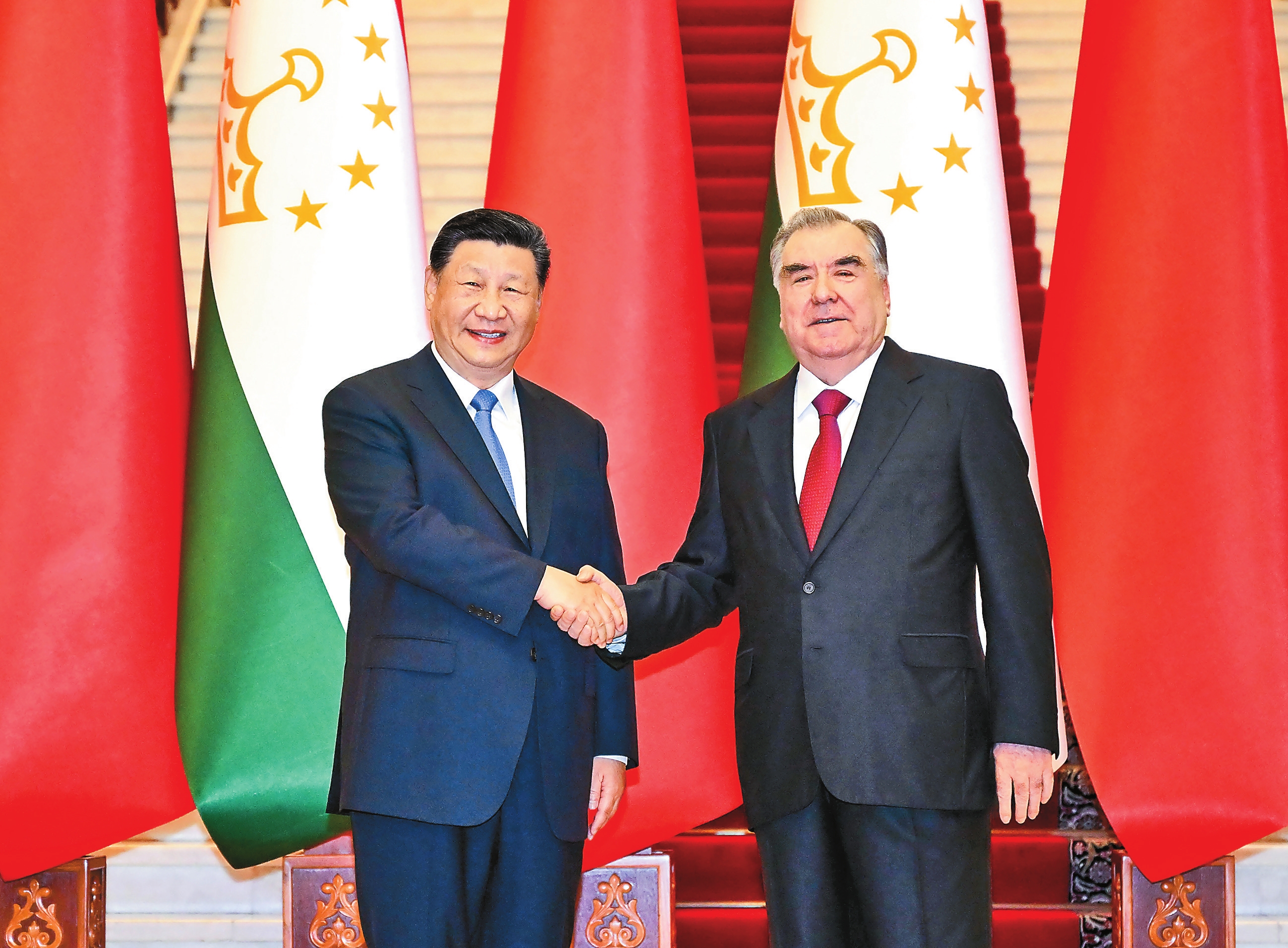 拉赫蒙为习近平举行盛大隆重的欢迎仪式。