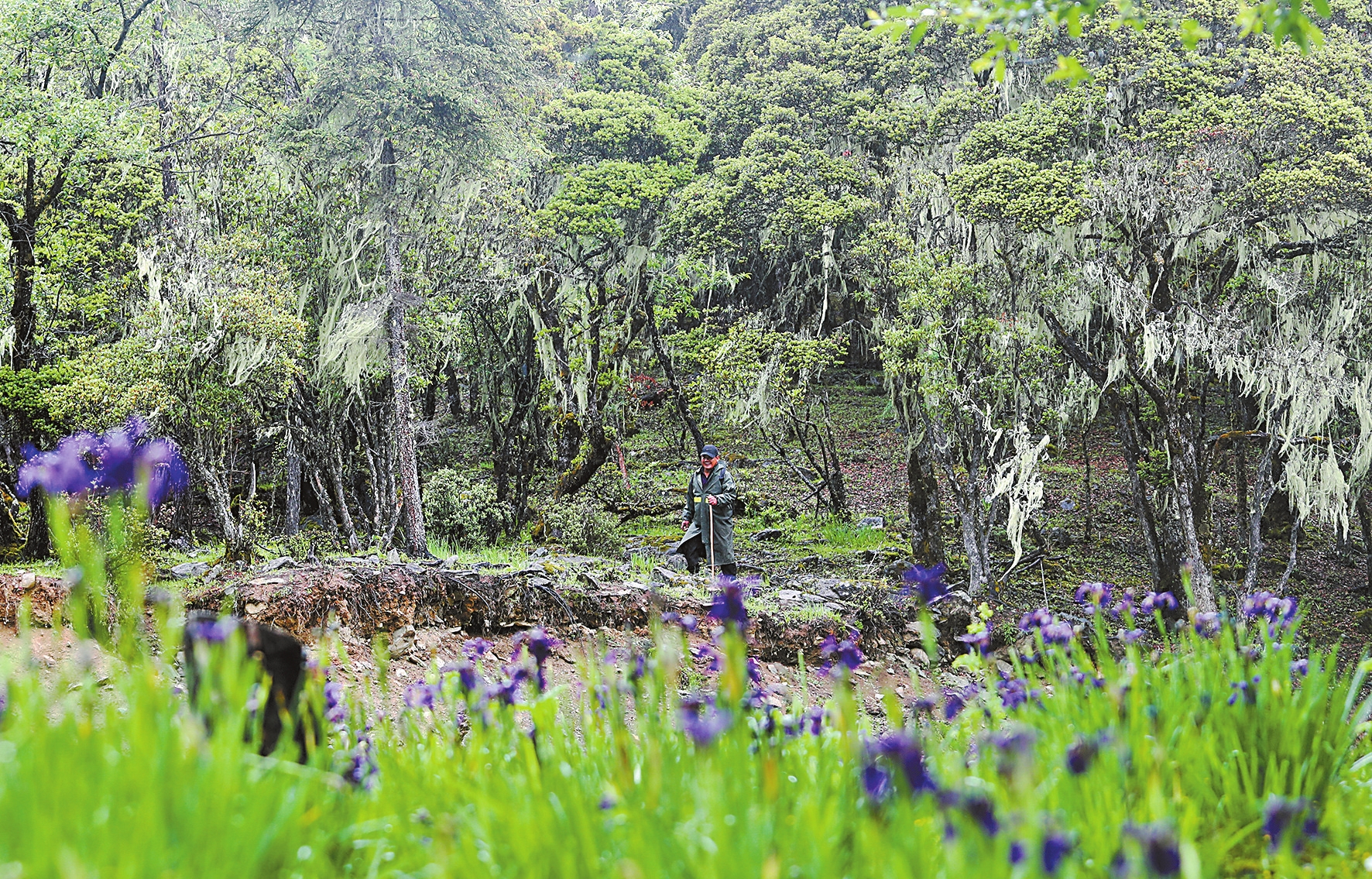 和李文富有同样感激之心的还有洛吉乡岩落村的村民谷玉光。他在6月下旬就住进了自家在崩土山的牧场,那里是生长松茸的好地方。这段时间,他每天凌晨三四点就出门找松茸。谷玉光说,他们家大部分的收入都是“松茸给的”,“保护好森林,森林也会很好地对我们。”在山里,谷玉光每找到一朵松茸后,都会把撬开的泥土再恢复平整,这是松茸来年再生长的需要,也是他向大山传递感谢的方式。