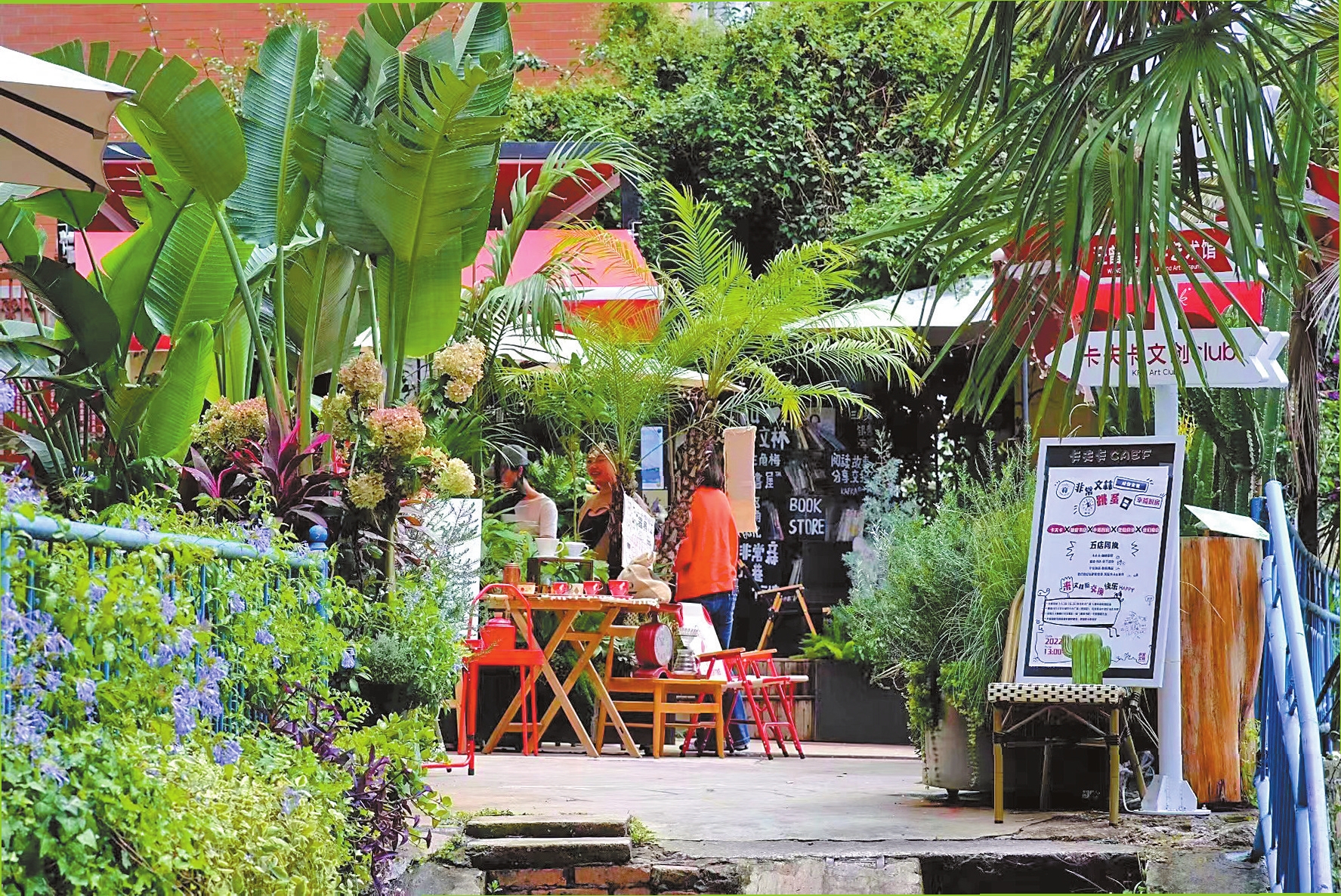 文林街卡夫卡咖啡书屋外,一棵三角梅正在盛放,树叶如瀑布,造出一个幽静的空间。2021年7月的一天,一场短时的雷雨让巨大的三角梅颓然而倒,压倒了咖啡店的凉亭,砸倒了旁边的围墙,横在民强巷口。后面的日子,主理人张颖本想为三角梅带来的损失明确权责归属问题,但让她没想到的是,在与周边一来二去的联系中,发现眼前这条巷子是汪曾祺曾经住过的地方。