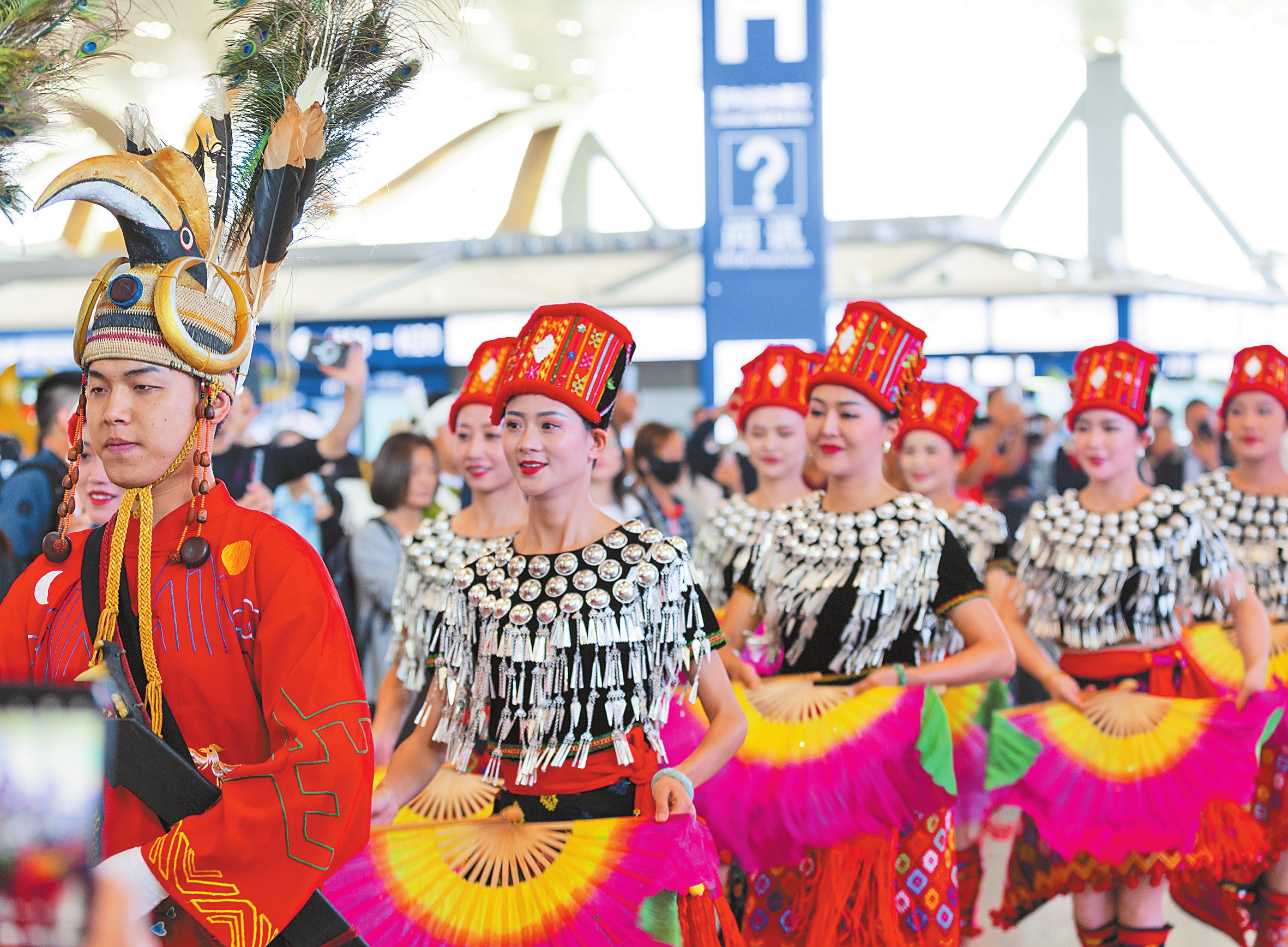 傣族舞,佤族木鼓舞、甩发舞,彝族“海菜腔”……民族歌舞不断;目瑙纵歌节、泼水节、“双胞胎”文化节……节庆精彩纷呈;纳西族东巴文字、楚雄彝绣、佤族织锦……非遗绚丽多姿。昆明机场通过文旅资源与航空出行的深度融合,不断优化服务体验,让旅客在机场“遇见云南”。