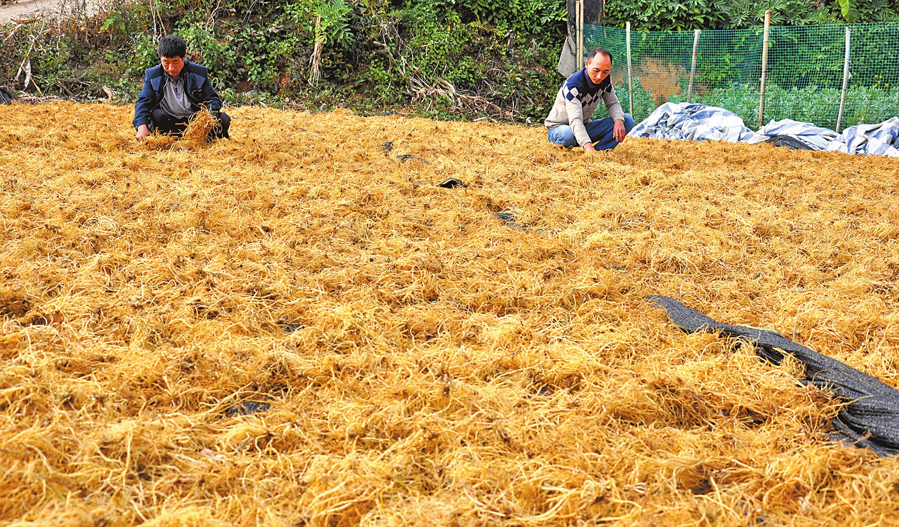 大寨镇箐门口村药农在晾晒滇龙胆草。 本报通讯员 王应良 摄