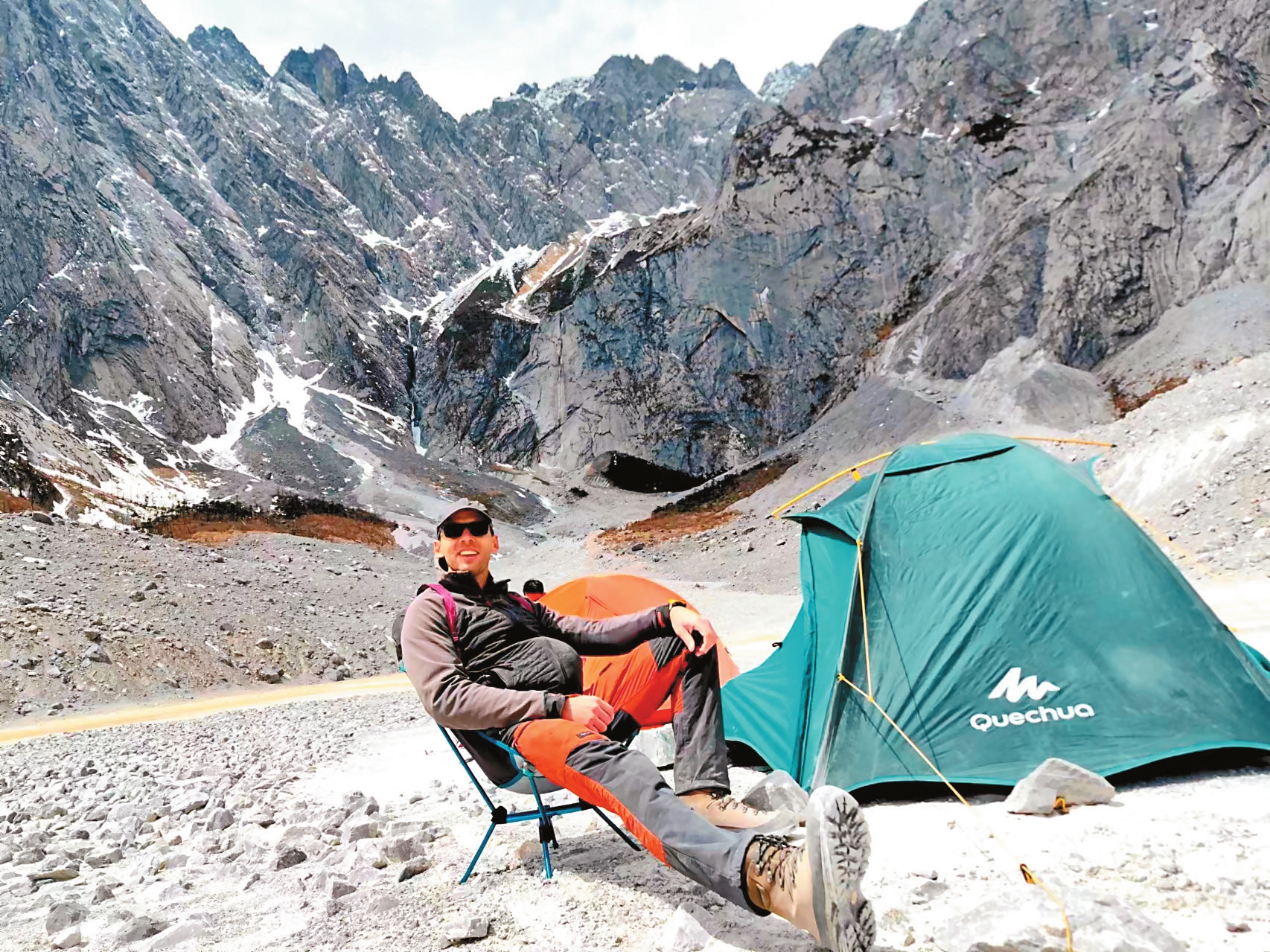 “智者乐水,仁者乐山”,从小就喜欢户外运动的潘伯良熟知《论语》里这句名言。“云南是户外运动的天堂。”潘伯良说,如果想找暖和点的地方,可以去元江、元谋或者西双版纳。如果想找比较凉快的地方,可以去大理、丽江、香格里拉。“中国有3个有名的攀岩区域,北京附近,桂林阳朔,第三个就是昆明。很多热爱攀岩的人从外地赶来昆明攀岩,西山、富民、团结乡都是绝佳的选择。”潘伯良在小红书、抖音等线上平台分享自己在云南各地登山、露营的美好生活。在昆明第二高峰马鬃岭山顶看日出吹笛子,欣赏景迈山的云海日出,带着3岁宝宝登雨崩冰湖,登顶哈巴雪山领略日照金山的雄壮,在普洱糯扎渡水库露营……“基本上每周我都会和家人朋友自驾外出游玩。”晋宁谷堆山是昆明附近的露营小天堂,能看日出,能看日落,能看滇池,能看抚仙湖。“距离昆明仅一个半小时车程,海拔2648米,冬天的晚上很冷,风大,但是看到云海的概率最大。夏天的晚上凉快,小虫子有点多,但是绿草特别治愈,一定要注意避开雷雨天气。”潘伯良的徒步攻略很详细,“徒步40分钟能到离山顶很近的营地,没水,一定要带走所有垃圾。停车方便,路况好,导航经过玉溪市江川区清水沟再接着往上开。”