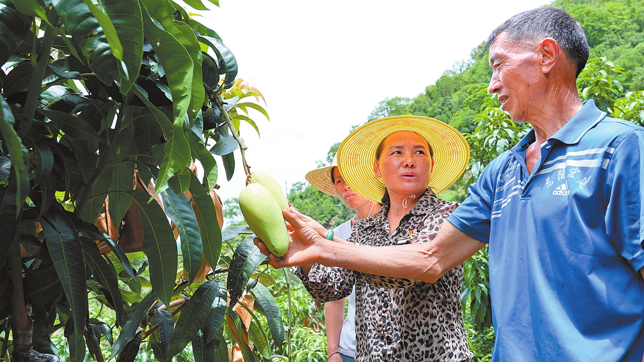 “芒果马上就可以摘了,这段时间雨水比较多,你要是在卖的过程中遇到什么困难就联系我们,我们会尽力帮你。”一大早,龙陵县木城彝族傈僳族乡老满坡村党总支书记郭玉琴就来到村民家中,查看芒果生长情况。