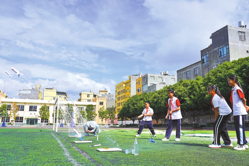 走进蒙自市团结小学的航模训练室,映入眼帘的是上千个各式各样的航模和百余个奖杯。操场上,学生们逐一开展水火箭、手掷木飞机、火箭发射等项目的演练。近年来,团结小学的航模少年在各级科技体育模型比赛中大展身手、屡获佳绩。
