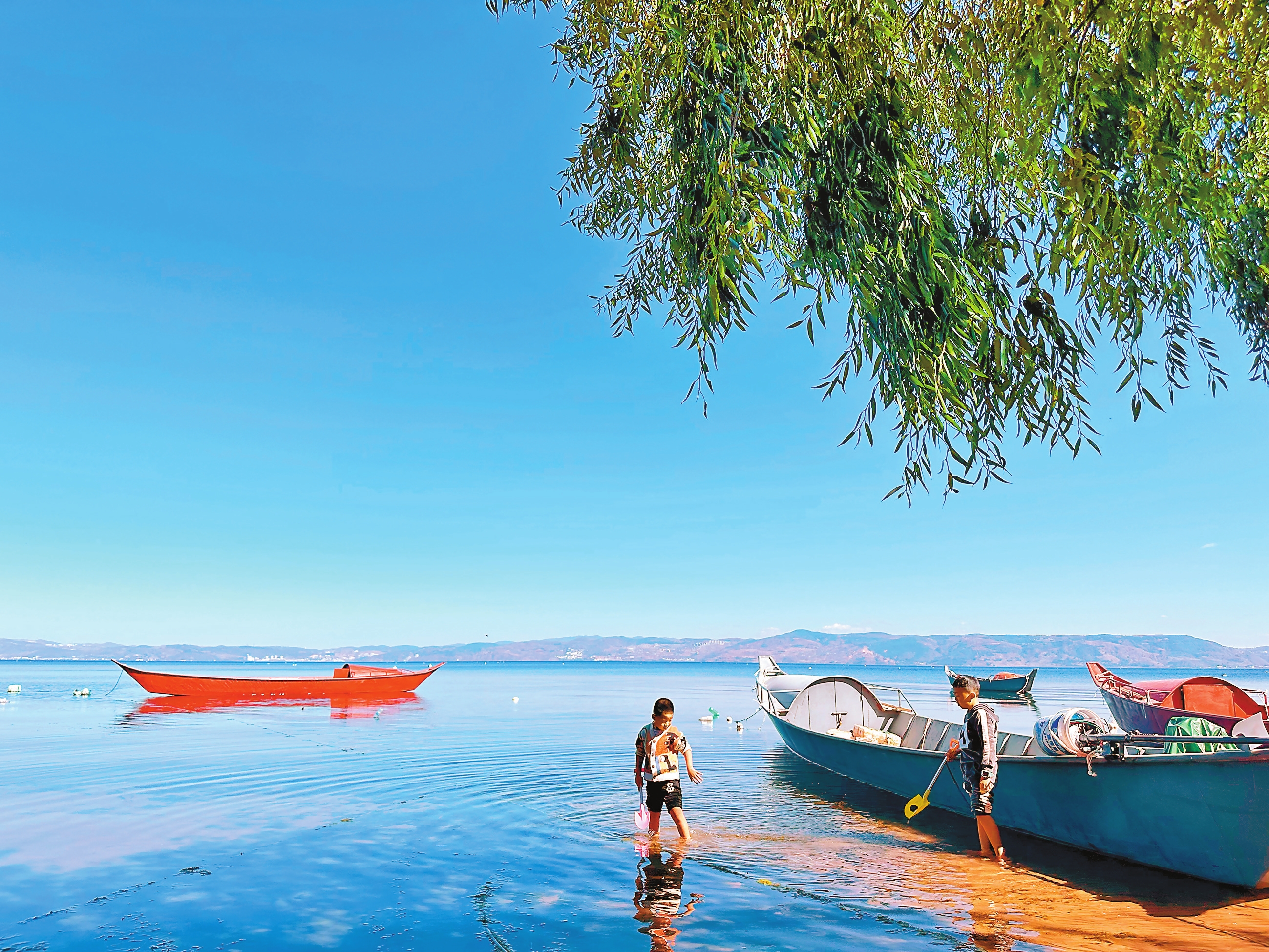 7月中旬,拥有世界深蓝湖区抚仙湖、地球生命起源澄江化石地、古滇文化发源地3张旅游名片的澄江市迎来暑期旅游热。上山可逛博物馆看夕阳,近水可入花海享农家乐,澄江市发挥抚仙湖、帽天山旅游资源富集的优势,打造度假休闲、观光体验、科考探险、民俗风情等旅游业态,促进旅游消费增长,加快推动农文旅融合发展。本报记者 王毅 摄