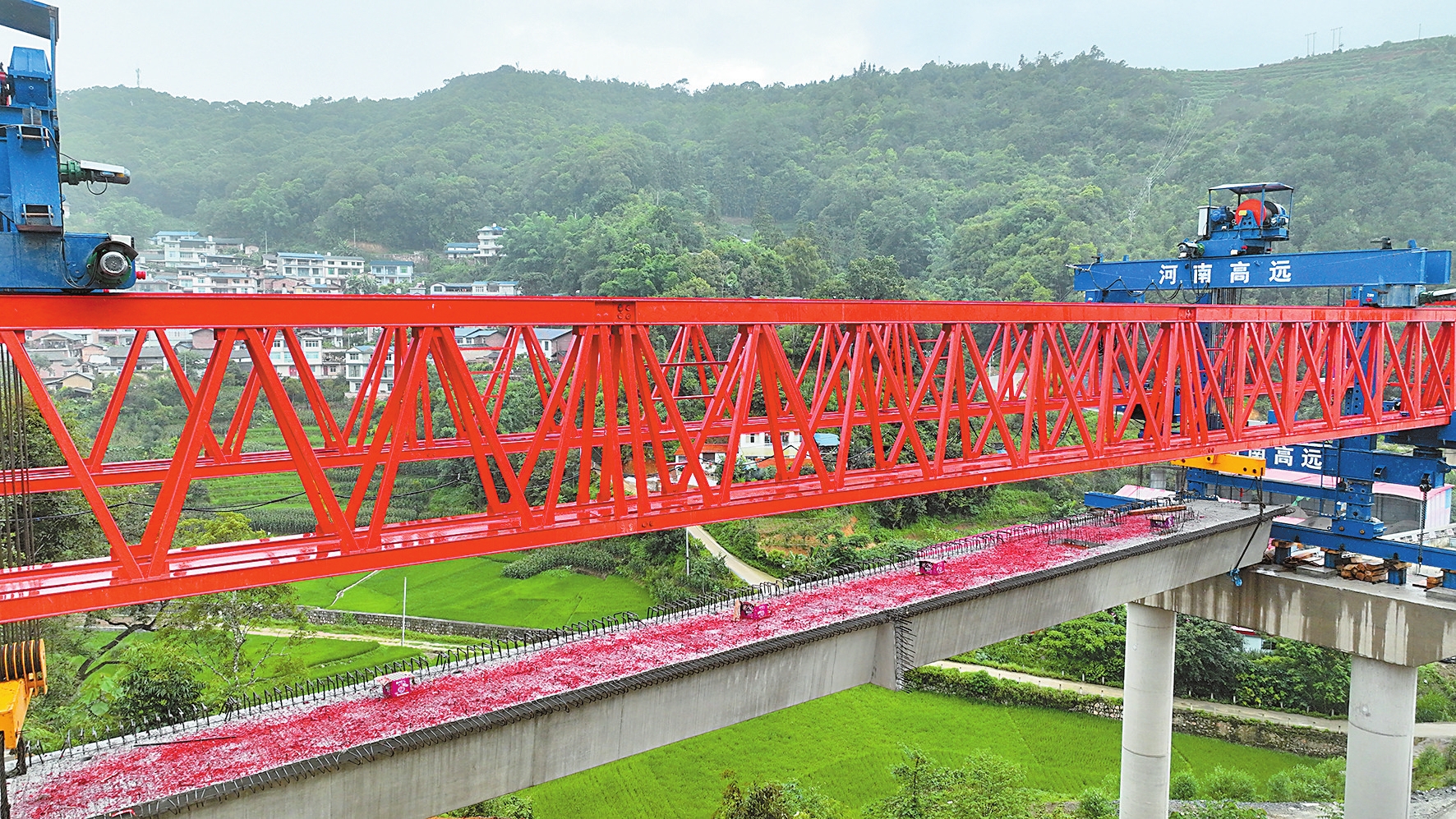 据了解,由中交二航局承建的天麻高速公路线路全长52.831公里,桥隧比为80.4%,包含桥梁27座。其中,TJ-3标段路线全长17.945公里,桥隧比82.8%,主要建设内容包括路基、桥梁、隧道、路面、房建及绿化等。截至目前,TJ-3标下部结构施工已经浇筑墩身230排,能够保证连续架梁。架桥机架梁正式启动后,TJ-3标将以每周35榀的速度稳步推进梁板架设。