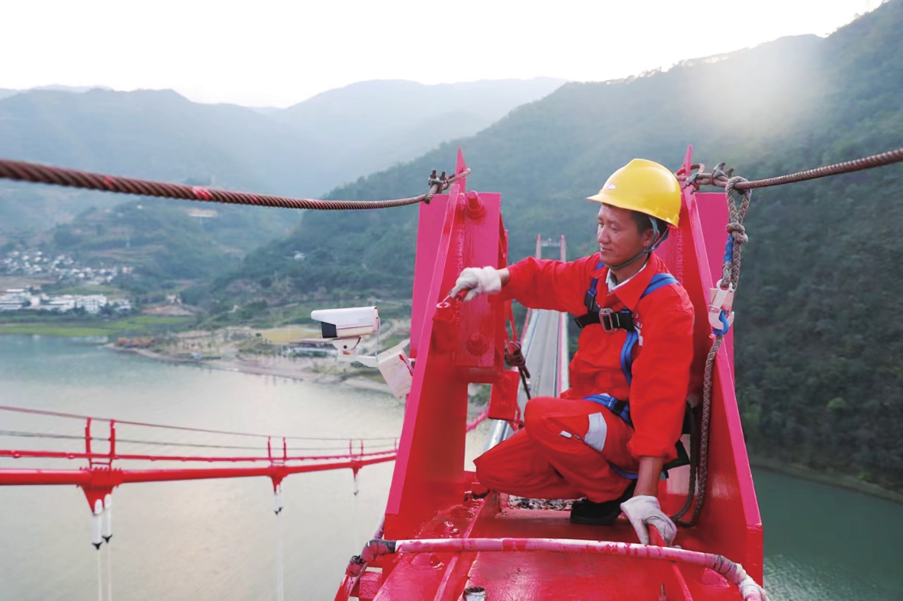 系上安全背带、背上10公斤重的检测工具,临沧公路局云县公路分局澜沧江特大桥管理所所长阮明陶又一次爬上了90米高的澜沧江特大桥主缆做巡护检查。在“走钢丝”一样的作业环境,完成一次巡护检查需要3个多小时。遇上江风大的时候,他只能匍匐在狭窄的检修通道上,紧紧抓住缆道边沿,随着悬索在空中摇摆,等待风力减弱再继续前行。