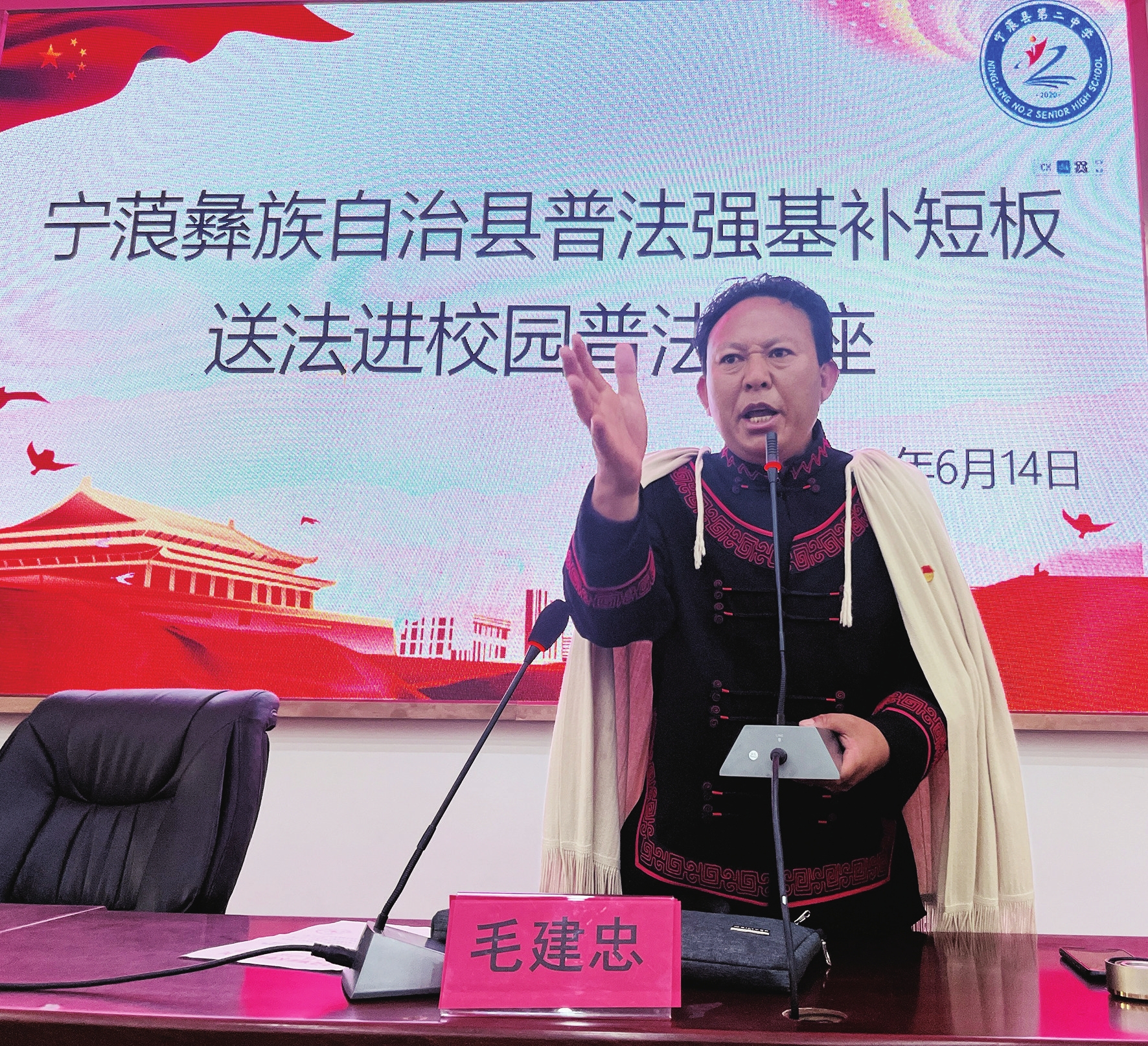如今,宁蒗县成立“毛建忠双语普法工作室”“毛建忠双语普法资源库”,希望依托工作室培养一支“永远不走”的基层普法工作队和“法律明白人”。