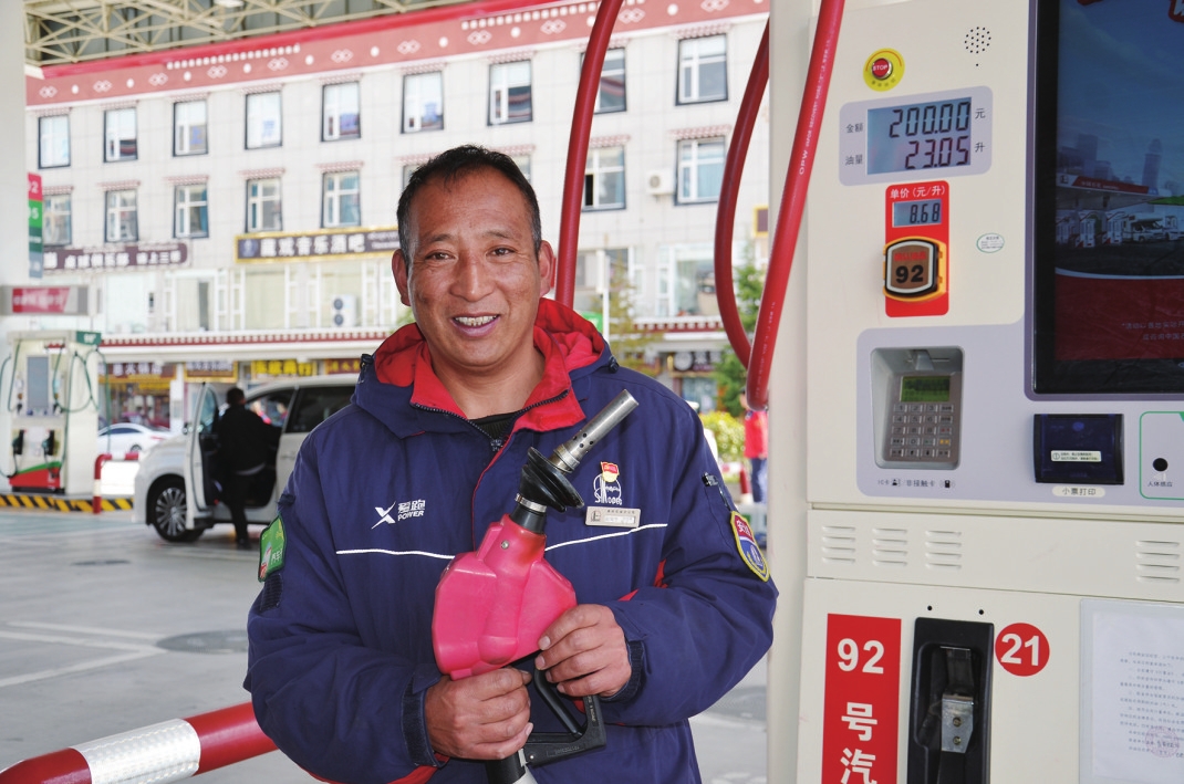 皮肤黝黑、脸上总带着微笑,为司机提供周到服务的站长赵甸生曾经在这里坚守17年,帮助一辆辆汽车在雪域高原“加油”启程。他自己也从普通加油员一步步成长为加能站站长,创造了云南省海拔最高加能站工作时间最长的纪录。