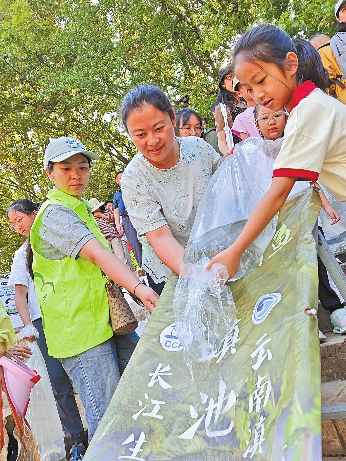 本报讯(记者 王琼梅) 近日,“长江有鱼—滇池土著鱼保护”滇池金线鲃放流增殖活动在昆明市举行,约8000尾滇池金线鲃鱼苗被放流到盘龙江盘江东路白云路段水域。来自中国科学院昆明动物所、盘龙区河(湖)长办、致公党西山四支部、致公党云南农业大学支部、青春昆明的50余名志愿者参加。