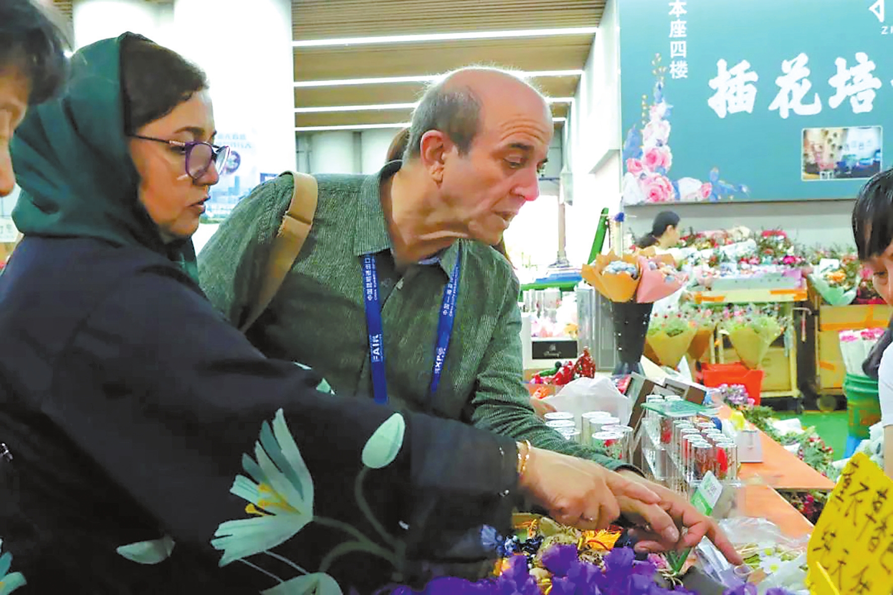 代表团了解插花技艺。