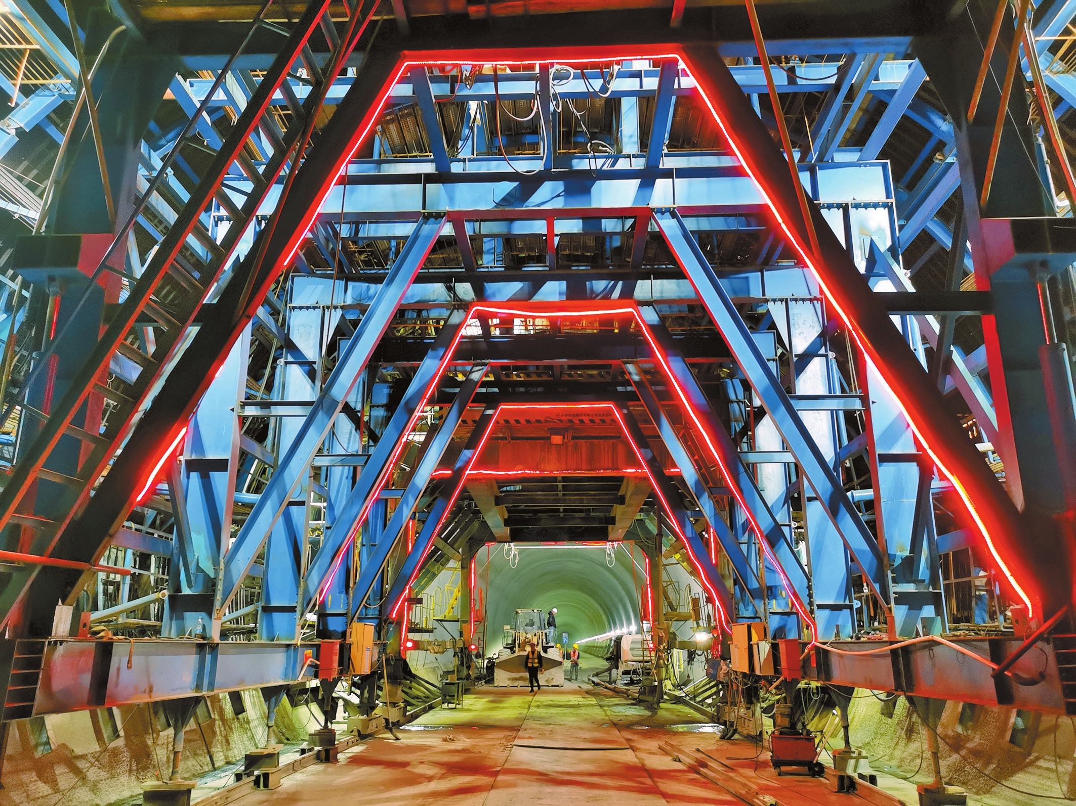 为确保隧道建设安全有序推进,中国铁路昆明局集团有限公司滇中铁路建设指挥部组织参建单位研究优化施工组织方案,运用控制爆破、机械开挖、高精度超前大管棚等工程措施提高施工效率,同时在距隧道出口500米处增设斜井,将原有的4个工作面增加为5个,实现了隧道提前贯通。