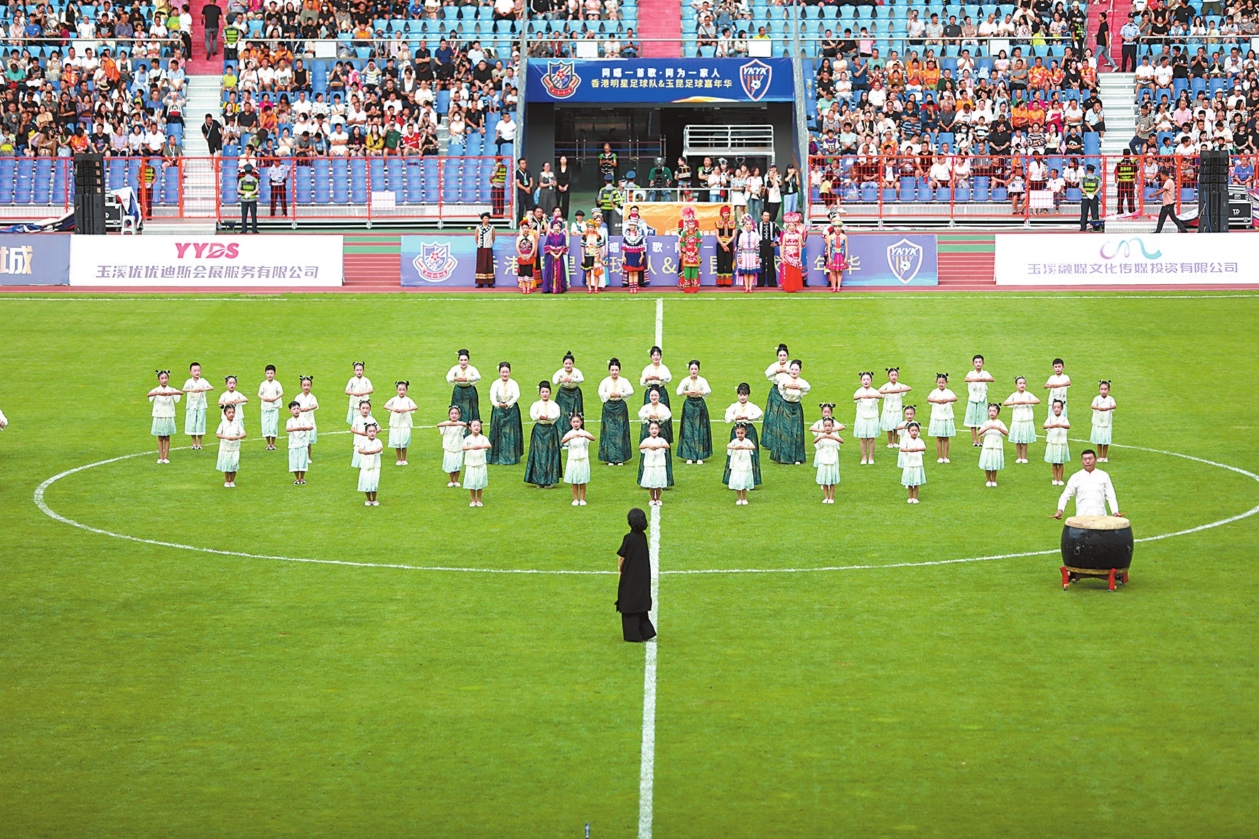 7月27日,玉溪高原体育运动中心又迎来了一个高潮——当晚“同唱一首歌 同为一家人”香港明星足球队—玉昆足球嘉年华活动举行,近2万观众到场观赛。