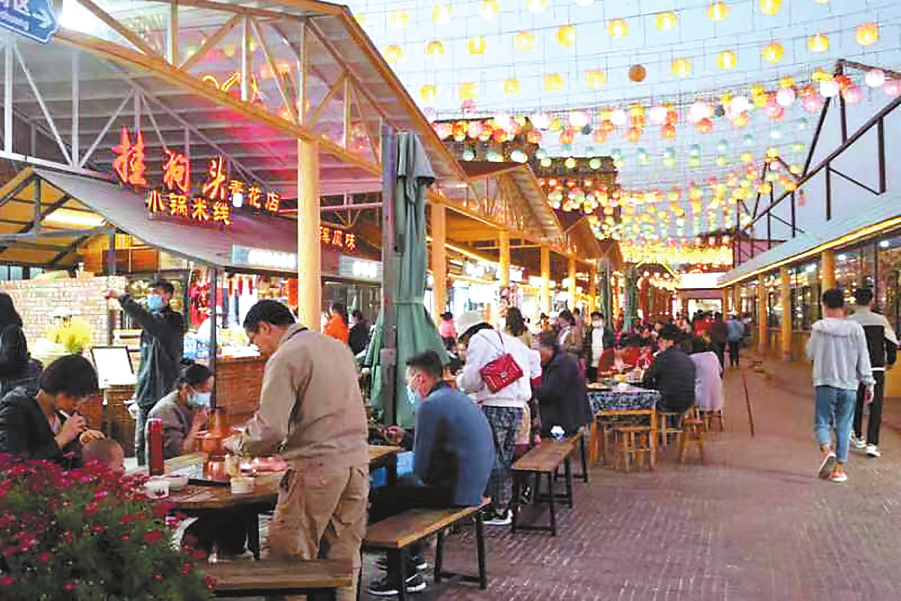 明显感受到客流增加的还有青花街新媒体运营总监元鹏,“平常周末,我们一个晚上的客流量在7000人次左右,有球赛的周末客流量能翻一倍。”青花街是从瓦窑村烧窑的旧址改造的夜市,以拍照打卡、特色美食、特色文创吸引游客。
