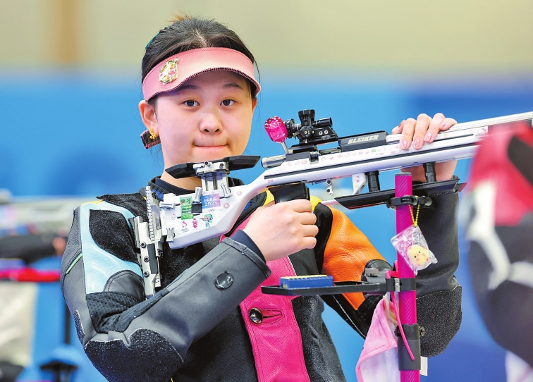 8月2日,中国选手张琼月获得射击女子50米步枪三姿决赛铜牌。图为张琼月在比赛中。新华社记者 赵丁喆 摄
