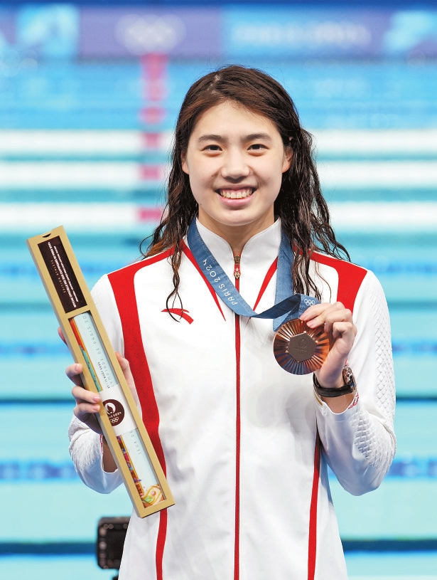 8月1日,中国选手张雨霏获得女子200米蝶泳季军。图为张雨霏在颁奖仪式后。新华社记者 杜宇 摄