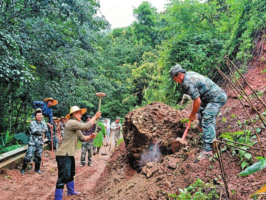 8月1日凌晨,勐海通往打洛口岸的二级公路查缉点附近路段受洪水冲击塌方,导致车辆交通中断。打洛镇党委、政府立即组织全体干部职工、村、组干部和网格员下沉一线开展排查,全力投入到抢险救灾工作中,落实24小时巡查值守制度,及时发布预警信息,做好应急准备工作,立即组织力量对塌方路段进行抢修保通。受连续降雨和地势较低影响,景洪市嘎洒街道曼占宰社区曼凹和曼达社区曼达等7个居民小组发生内涝,导致部分村民的房屋、车辆被淹,道路受阻,电力中断。景洪市应急、消防部门和社会救援力量第一时间奔赴现场开展救援,及时疏散被困群众,尽最大努力守护好人民群众生命财产安全。