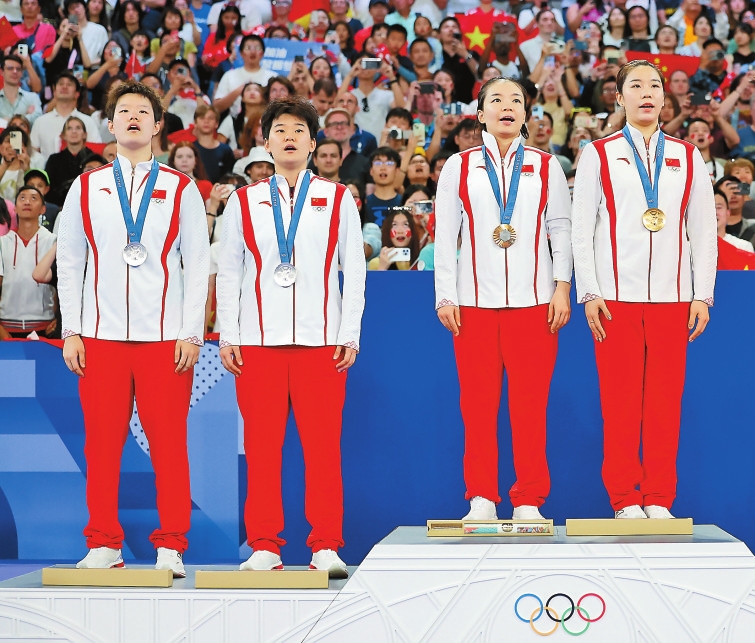 赛后,四名队员一同身披国旗绕场致意。这是“凡尘”组合的首枚奥运金牌,在东京奥运会决赛中,她们被印尼组合波莉/拉哈尤击败。