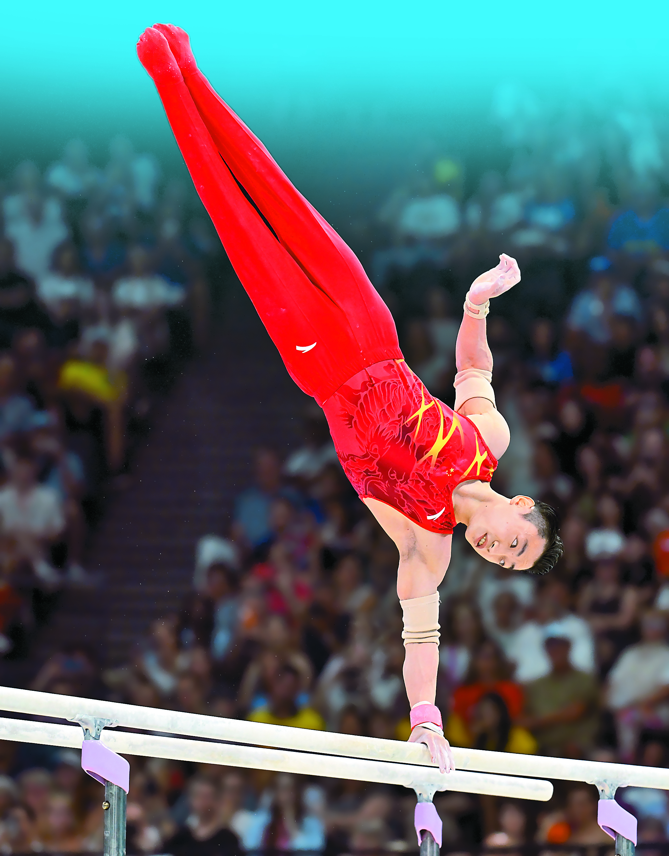 据新华社巴黎8月5日电(记者 李典 卢羡婷) 5日,巴黎奥运会体操项目迎来最后一个比赛日,产生四枚金牌。邹敬园和周雅琴分别获得男子双杠金牌和女子平衡木银牌,中国体操队以2金5银2铜收官。