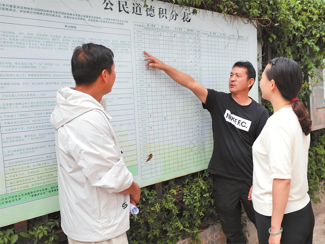 龙街街道梁王社区监委会委员王康介绍:“道德积分制还与‘好人模范’‘十星级文明户’评选相结合,通过‘一带十’‘十带百’让所有群众参与其中,争做文明风尚实践者。通过这些年的建设,我们明显感受到村居环境更整洁了、邻里关系更和睦了,人们的思想观念也在潜移默化地改变,文明风尚蔚然成风。”