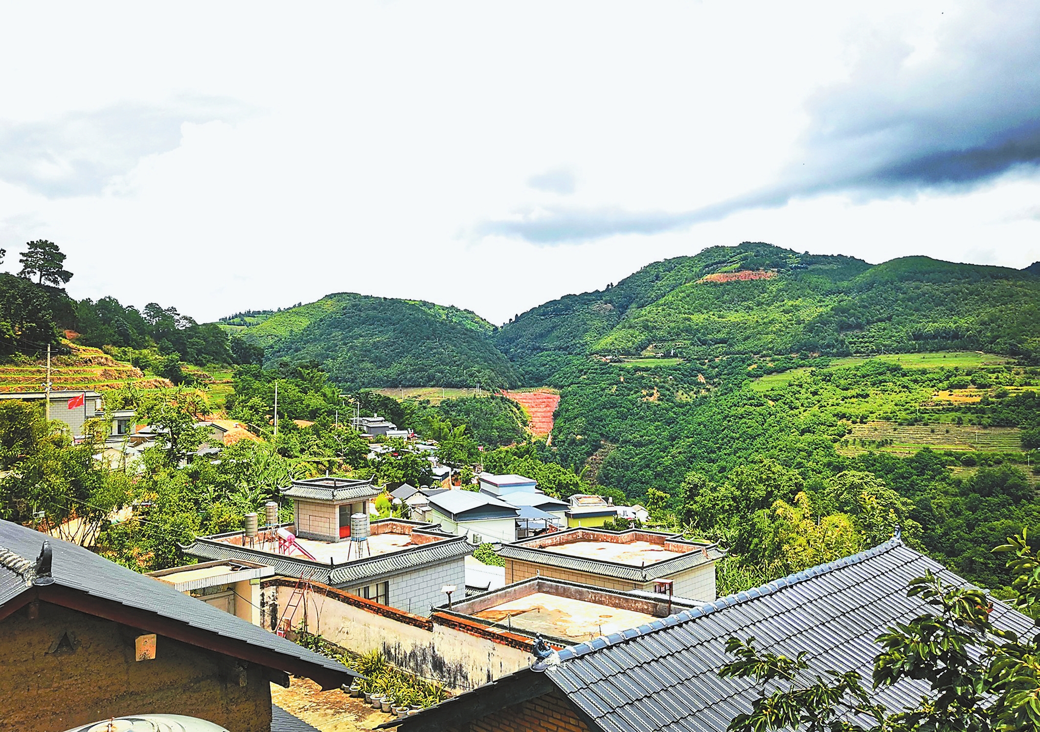 盛夏时节,走进昌宁县鸡飞镇扁木村沟寨沟坡村民小组,干净整洁的道路两旁,小菜园、小花园、小果园绿意葱茏,一座座农房庭院掩映于绿树红花之间,一幅“绿树村边合”的田园美景扑面而来。
