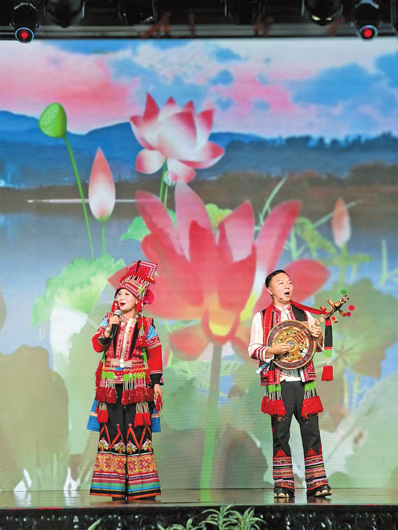 8月6日晚,“庆祝中马建交50周年暨2024年古晋节文艺演出”活动在古晋南市举行,现场近800名观众观看了演出。在一个半小时的专场演出中,红河州歌舞团倾情呈现了群舞《花开彩云南》、哈尼族舞蹈《秧姑娘》、彝族舞蹈《绣》、壮族舞蹈《洞天》等表演,彝族海菜腔对唱《金鸟银鸟飞起来》、哈尼族《长街宴》《阿究赫》、云南民歌《小河淌水》等歌曲和民族乐器演奏。现场气氛热烈,云南艺术家的精彩表演赢得了现场观众一次次的喝彩与掌声。演员们用精湛舞技和优美歌声展现了云南人民淳朴善良、热情友好的形象,演绎了人与自然和谐共生的生产生活景象,“绘制”出多姿多彩的民族文化风情画卷。