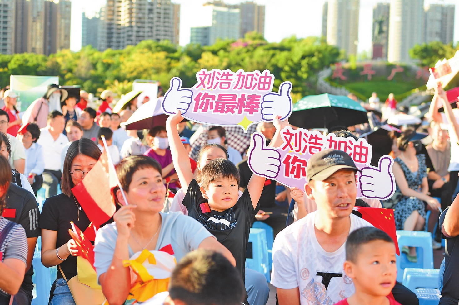8月8日,当刘浩和季博文获得冠军的那一刻,在玉溪市聂耳音乐广场上观赛的人们顿时沸腾起来,大家欢呼雀跃,掌声与欢呼声此起彼伏,“刘浩,巴黎奥运会冠军,玉溪人民为你骄傲!”“刘浩加油!中国必胜!”