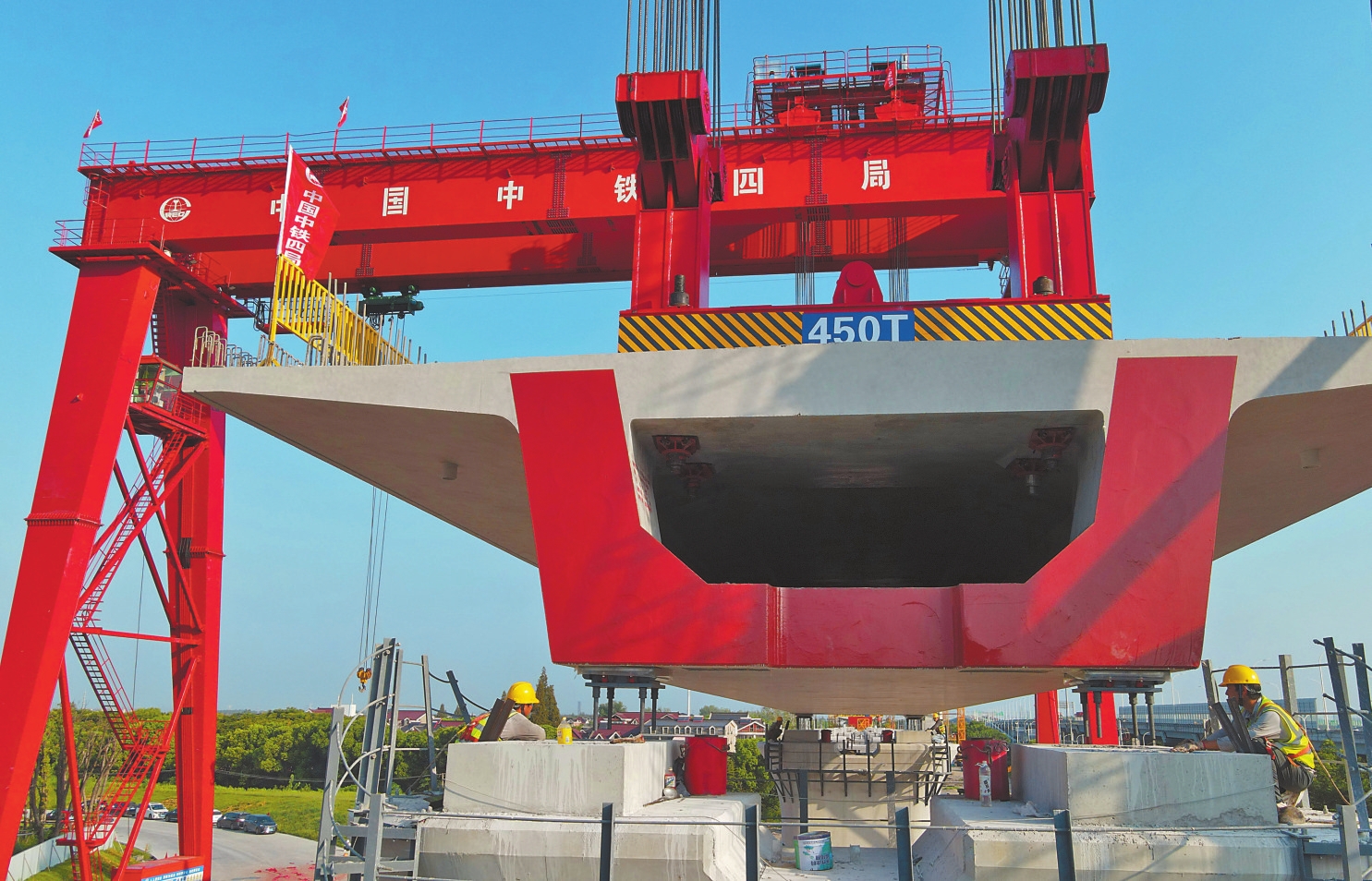 8月26日,由中铁四局承建的沪渝蓉高铁上海段首榀箱梁架设完成,标志着该段正式进入桥梁架设阶段。上海段是沪渝蓉高铁东段线路的重要组成部分,沪渝蓉高铁东段线路项目建成后,对于优化沿长江地区铁路网布局、服务长江经济带协同发展,推动长三角高质量一体化发展等具有重要意义。