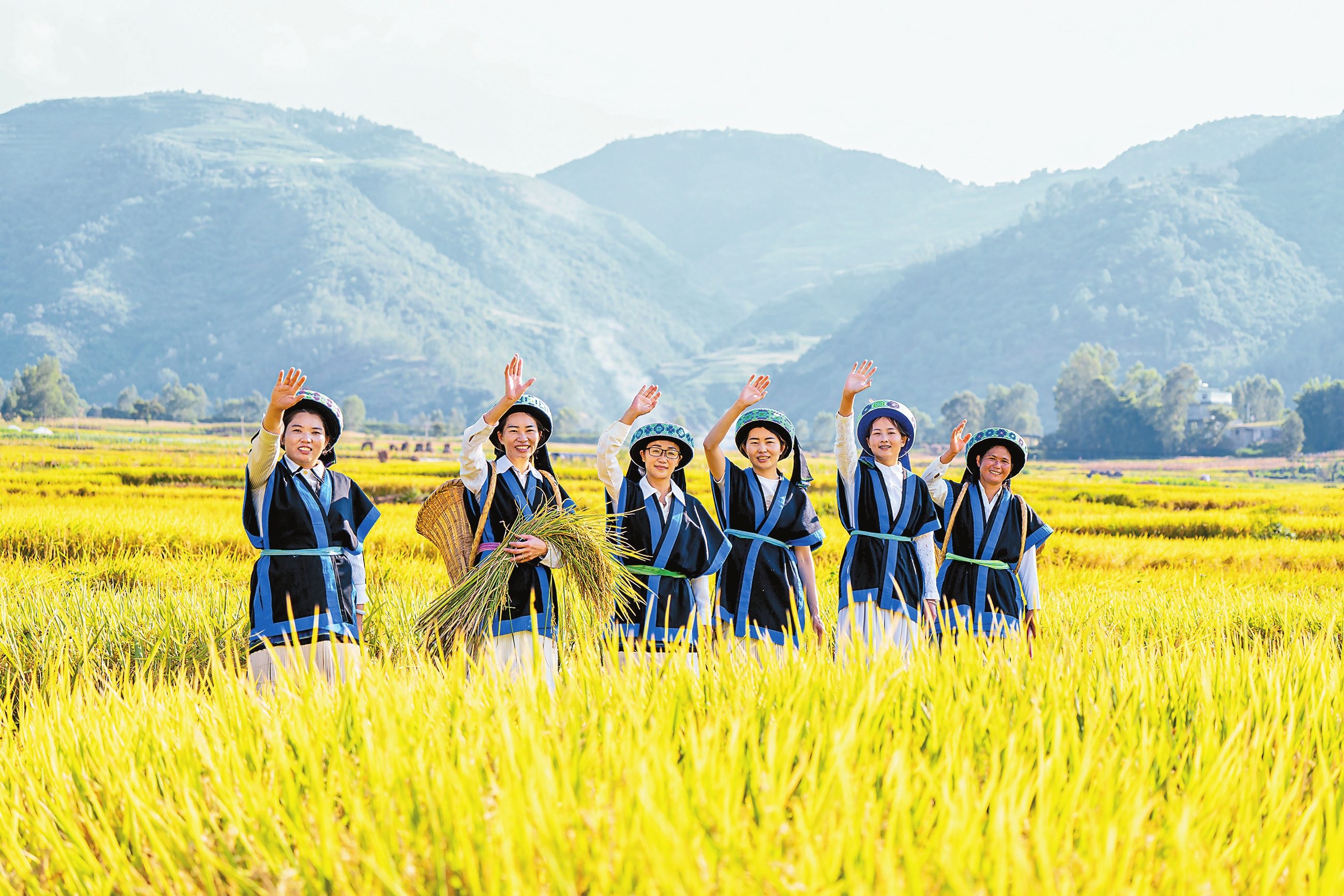 秋天是收获的季节。走进禄丰市和平镇,金色的稻田装点着山坡,微风吹过,稻香扑面而来。