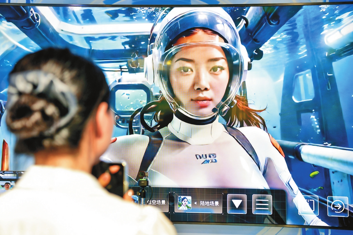 图为当日,参会人员在数博会上体验AIGC智影奇境。