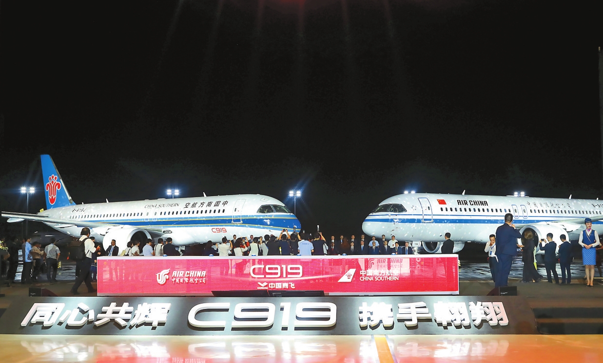 8月28日中国国际航空公司和中国南方航空公司在中国商飞总装制造中心浦东基地同时接收首架C919飞机。这标志着C919飞机即将开启多用户运营新阶段。