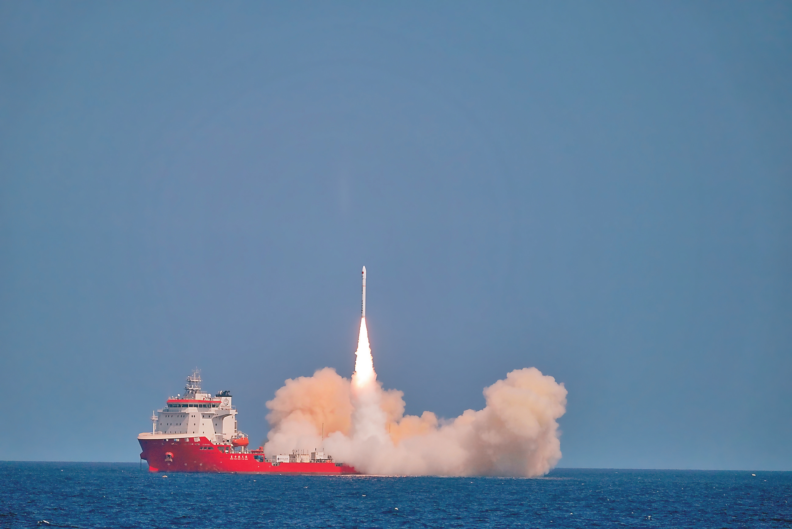 8月29日13时22分,我国太原卫星发射中心在山东附近海域成功发射谷神星一号海射型遥三运载火箭,搭载发射的云遥一号15星-17星、吉天星A-03星、苏星一号01星、天辅高分二号卫星顺利进入预定轨道,飞行试验任务获得圆满成功。 新华社发 冉芥 摄