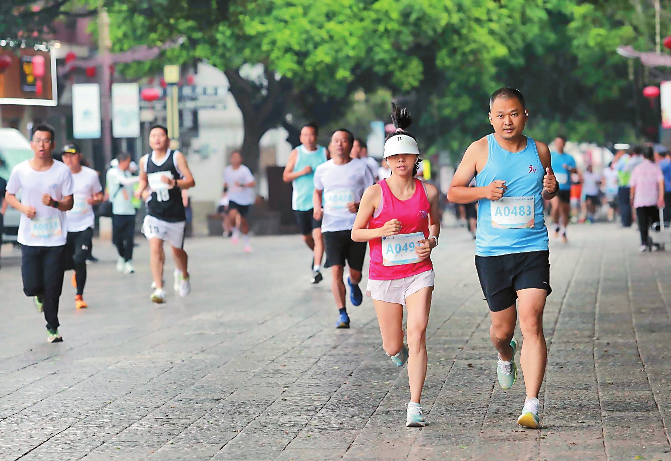 8月31日,2024“奔跑彩云南”名城名镇领跑赛(建水站)在建水朝阳楼鸣枪开跑。本次赛事线路极具地方特色,从朝阳楼出发,途经学政考棚、临安府衙、建水文庙,参赛选手们穿梭于古城之中,一步一景,尽情领略“文献名邦”的独特风采。2024“奔跑彩云南”名城名镇领跑赛以“名城名镇”为主题,在为广大群众提供丰富赛事活动供给的同时,传播具有云南特色的体育文化,充分展示“跟着赛事游云南”的独特魅力,推动我省名城名镇文体旅融合发展。本报记者 杨峥 摄