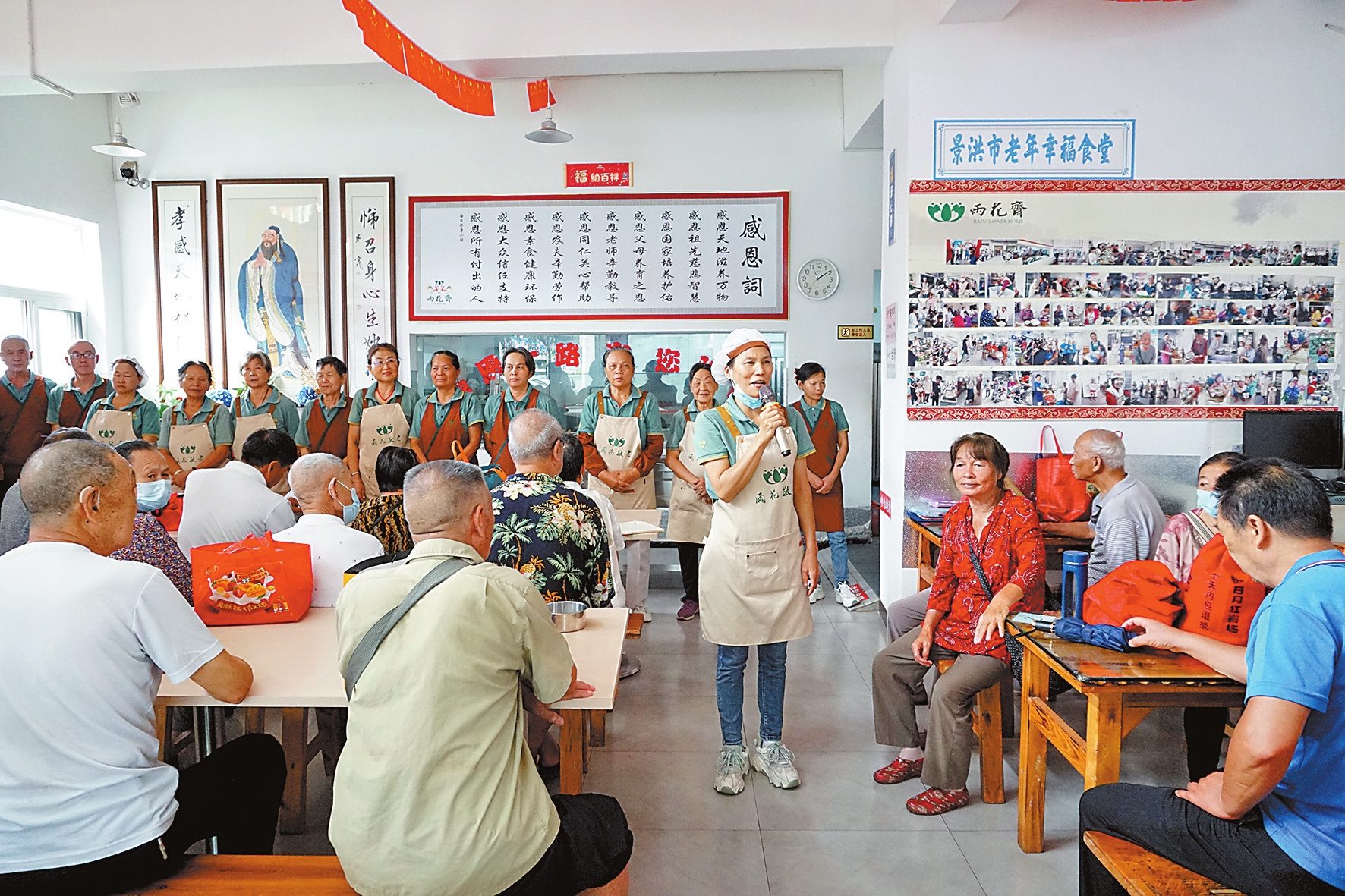 雨花公益幸福食堂由景洪市民政局登记的民办非企业单位——景洪市雨花公益服务中心管理运营。2018年,由景洪市当地企业家马茂、杨晓青和退休职工刘明红等爱心人士发起运营,面向65岁以上老人每天免费提供一顿午餐。刘明红说:“我们这个食堂,少的时候有100多人吃饭,多的时候有两三百人吃饭,6年来全靠爱心人士支持。”