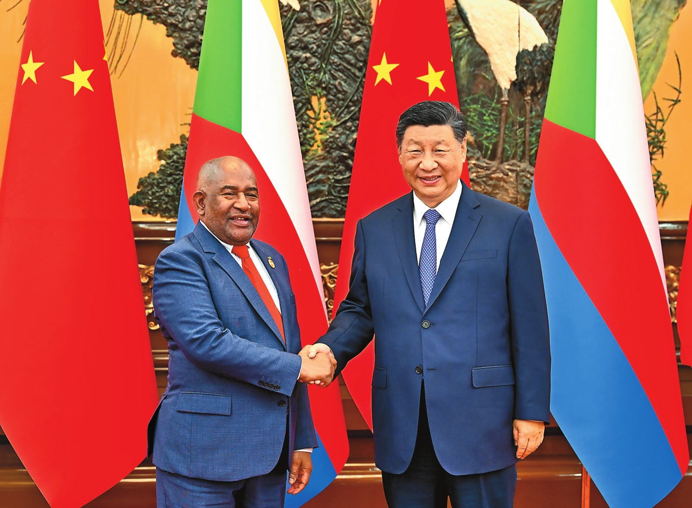 新华社北京9月2日电(记者 罗鑫 温馨) 9月2日上午,国家主席习近平在北京人民大会堂会见来华出席中非合作论坛北京峰会的科摩罗总统阿扎利。两国元首宣布,将中科关系提升为战略伙伴关系。