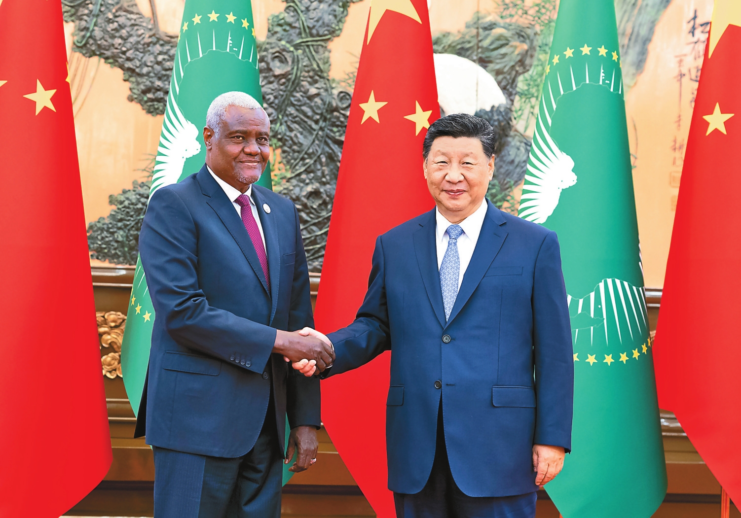 习近平指出,非盟是非洲联合自强的旗帜和开展国际合作的重要平台。近年来,中国同非盟政治互信持续深化,在国际和地区事务中密切协调配合。我高兴地看到,中国援非盟非洲疾控中心已经建成并投入使用,为非洲卫生事业和人民健康福祉作出贡献。中方支持非盟在中非友好事业中发挥更大作用,愿以此次中非合作论坛峰会为契机,推动中国同非盟各领域合作取得更多成果,推动中非命运共同体建设迈上新台阶。