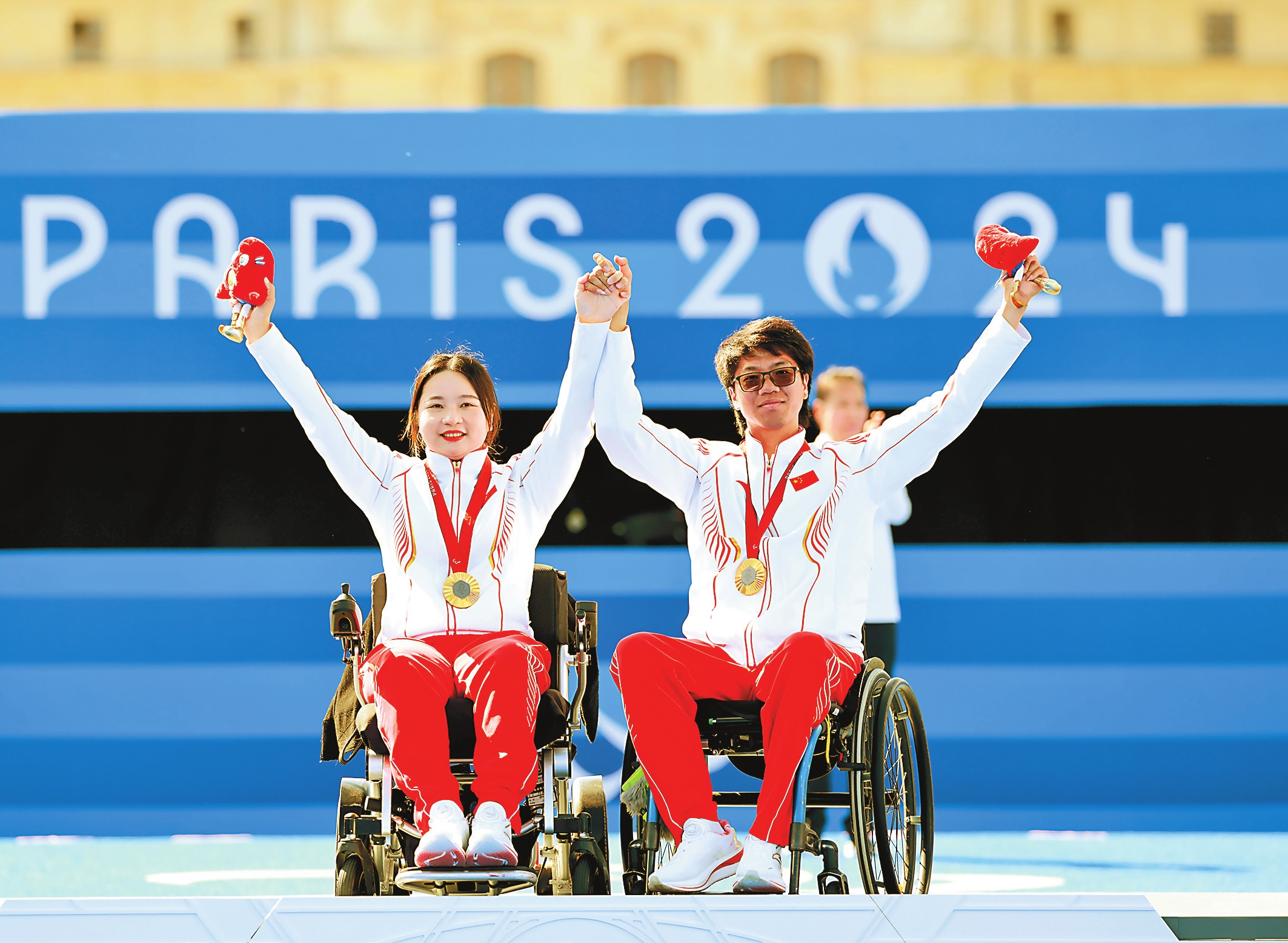 在巴黎荣军院的射箭赛场,中国选手张天鑫和陈敏仪在混合团体W1级比赛中,先是在半决赛以145:139击败韩国队,之后又在决赛中以147:143力压捷克队,夺得金牌。147环的成绩也打破了捷克队此前创造的残奥会纪录。在混合团体复合弓公开级四分之一决赛中,中国的周佳敏和艾新亮与意大利选手都取得151环的成绩,加赛依然是平局,最终意大利队凭借离靶心更近的优势晋级,中国队遗憾出局。