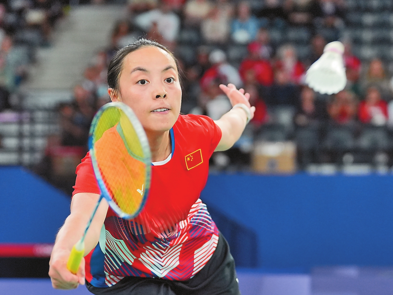 9月2日,在巴黎残奥会羽毛球女子单打SL4级决赛中,中国选手程和芳2比0战胜印度尼西亚选手莱尼·拉特里·奥克提拉,夺得冠军。图为当日,程和芳在比赛中回球。 新华社记者 邢广利 摄