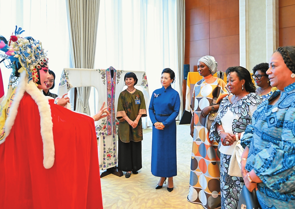 彭丽媛还同非洲贵宾们一道欣赏了少年儿童合唱和京剧表演,参观了中国传统文化和妇女教育成果展示。贵宾们对孩子们的精彩演出和中华优秀传统文化赞不绝口,对中国在促进妇女事业发展方面取得的巨大成就给予高度评价,现场气氛热烈友好。