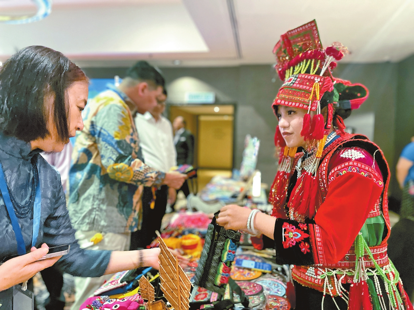 马来西亚企业家刘倖铨在彝绣展台前驻足良久,细细品尝云南咖啡和普洱茶。他坦言:“我对云南的特色手工艺品很感兴趣,通过这次面对面的文化交流,我更加迫不及待地想前往云南,深入体验当地的风土人情。”