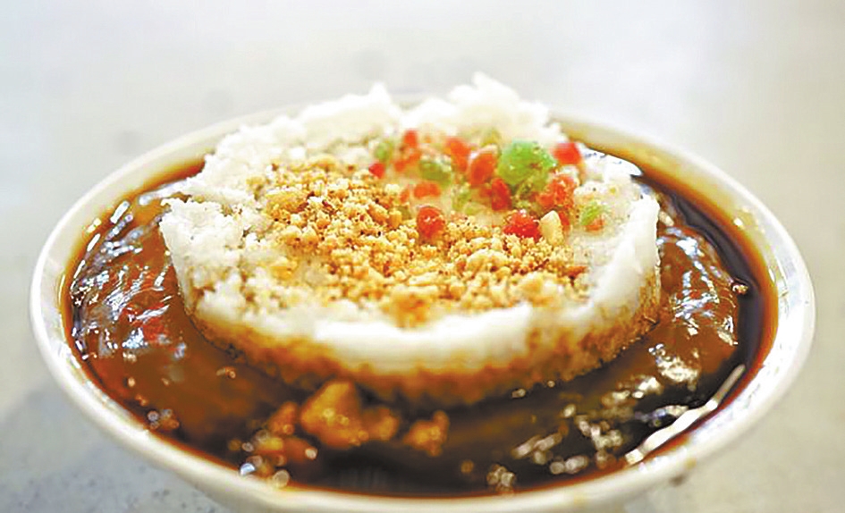 藕粉桂花糖糕可以说是《红楼梦》里最寻常不过的一款下午茶点心了。而在云南,也有一道米糕与藕粉搭配而成的美食,做法与藕粉桂花糖糕不同,被称为“调糕藕粉”,也有一些地方叫作“蒸蒸糕”。在那些蜿蜒清静的老街上,总有一家普通传统的老店里,放着造型独特的容器,下层大铁壶里烧着热水,上层木制小容器中蒸着米糕,沸水倒入藕粉迅速搅拌,放入洁白喷香的米糕,撒上红糖粉、白砂糖拌匀,在天气渐凉的秋天里吃上一碗,真是香软可口,暖意融融。