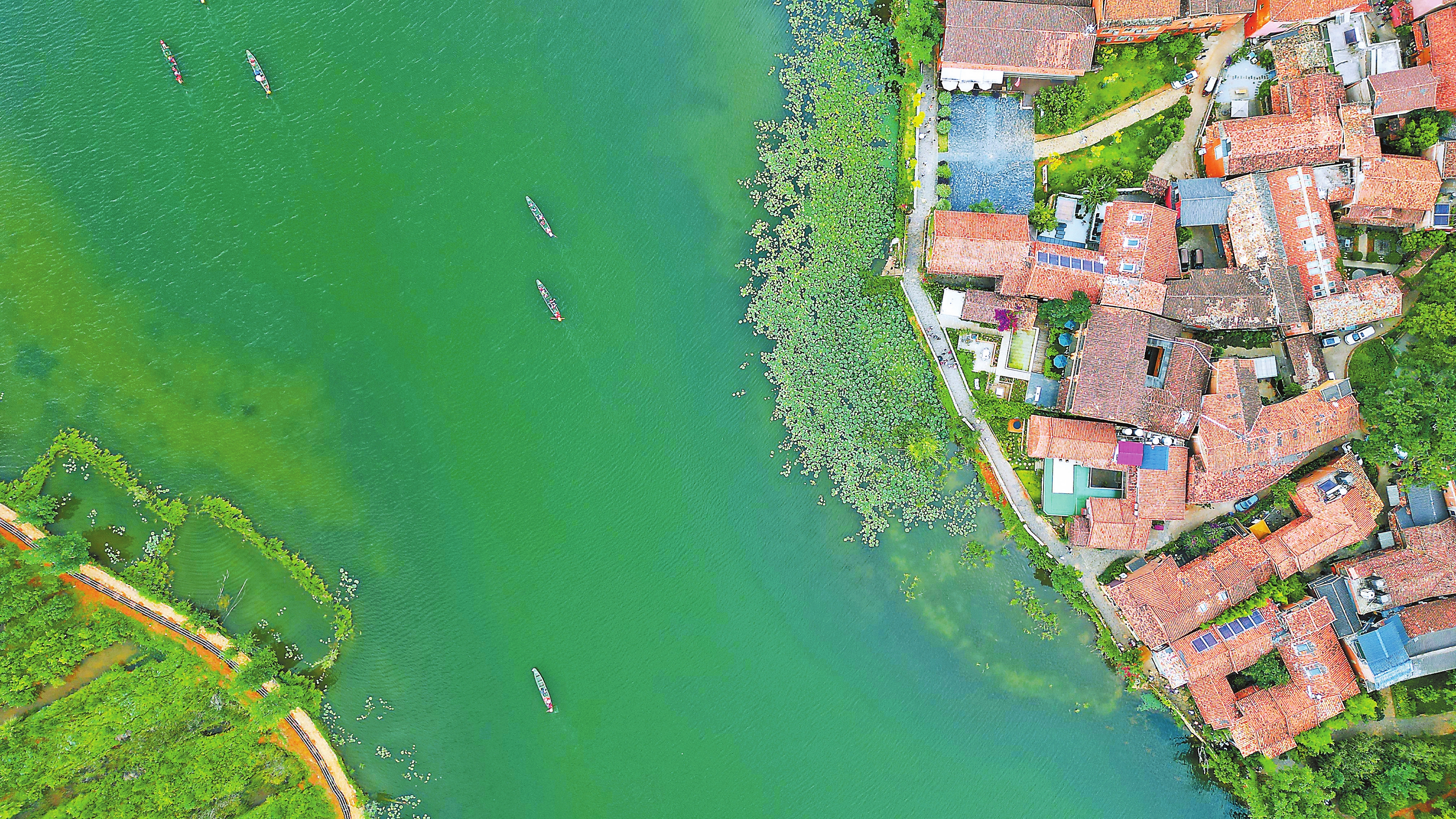普者黑村村民龚绍葵回忆:“以前湖边垃圾成堆,湖水也浑浊不清,我们看着都心疼。”如今,龚绍葵成为普者黑湖义务巡湖员,每天都会沿着湖边巡查。“现在不一样了,政府下了大力气治理,村民们也积极响应,主动参与打捞水草、清理湖面工作。”龚绍葵笑着说。